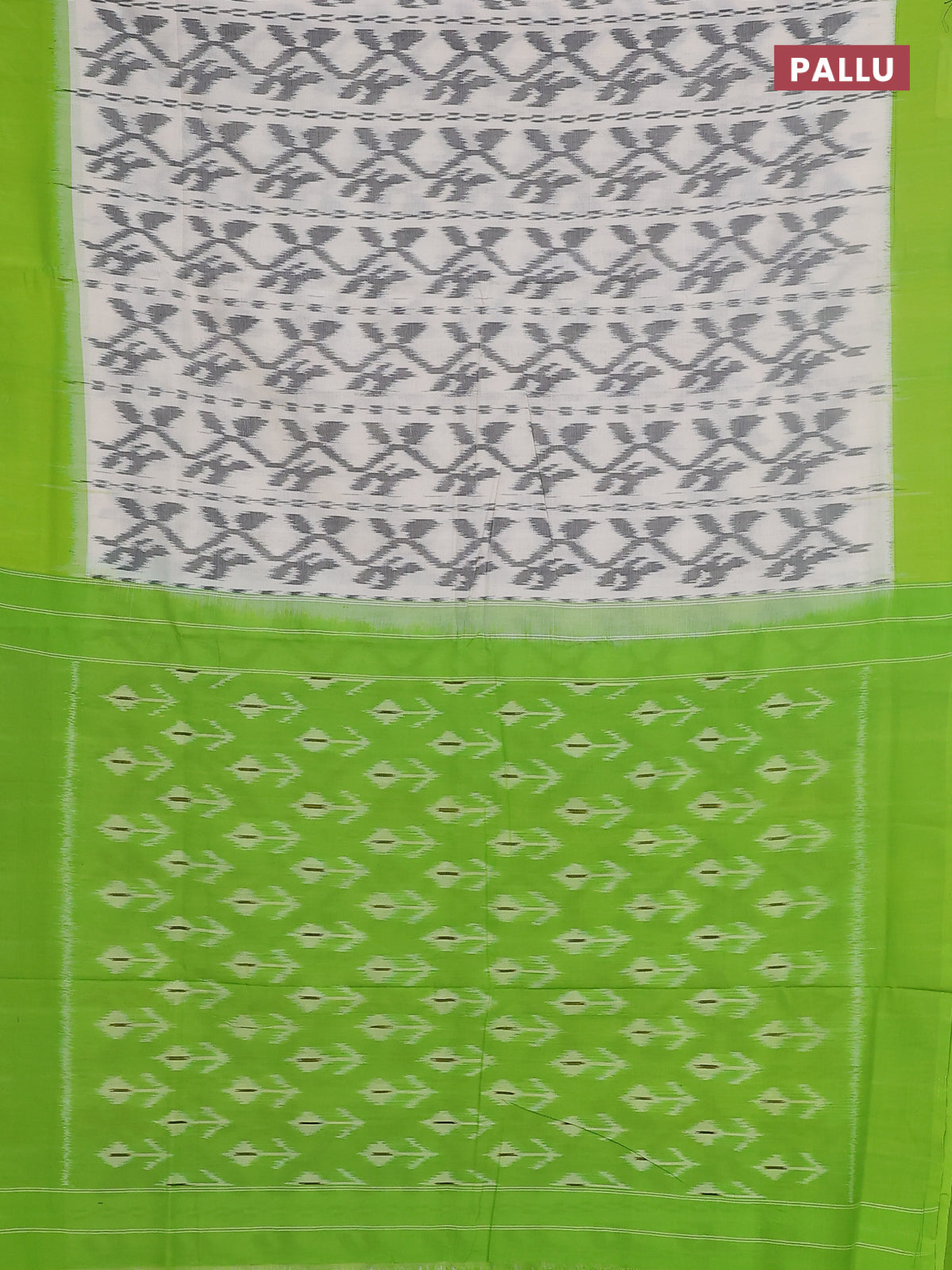 Ikat cotton saree off white and light green with allover ikat weaves and simple border