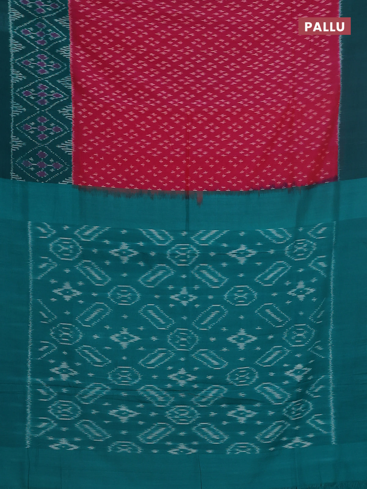 Ikat cotton saree pink and teal green with allover ikat butta weaves and simple border