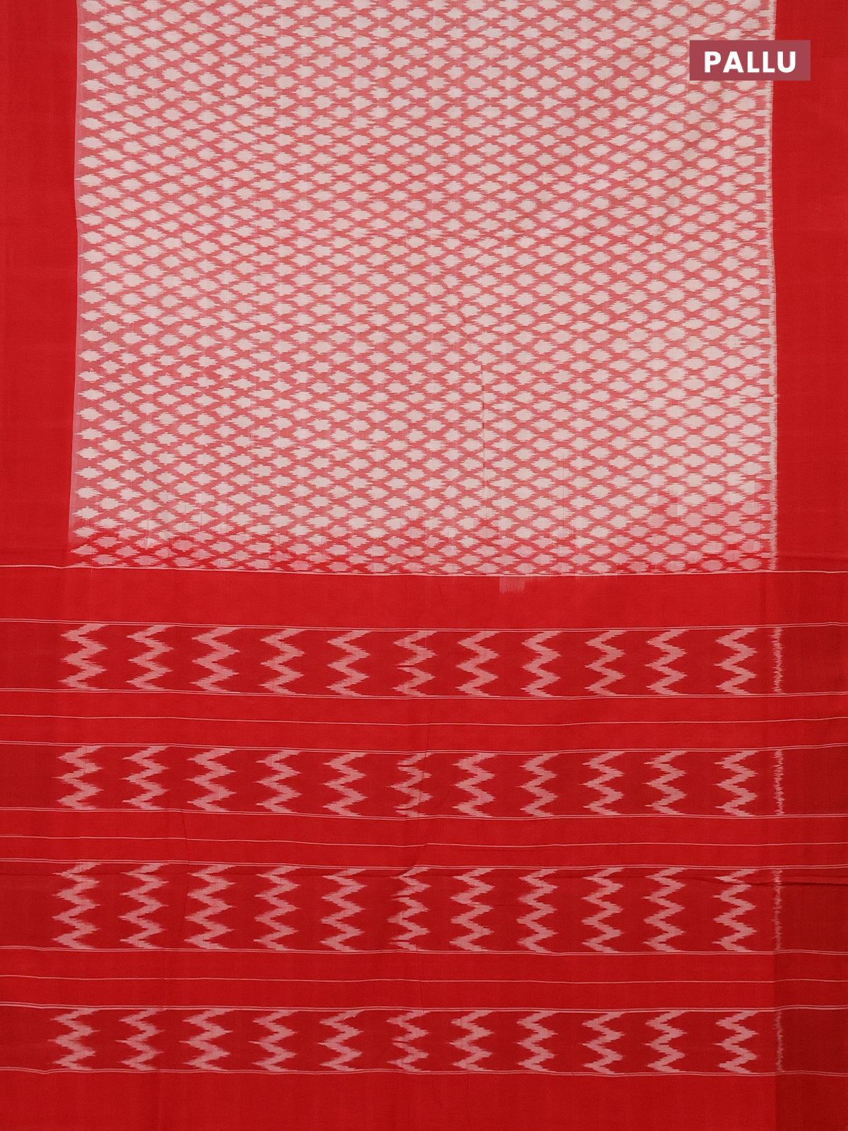 Ikat cotton saree red off white and red with allover ikat butta weaves and simple border