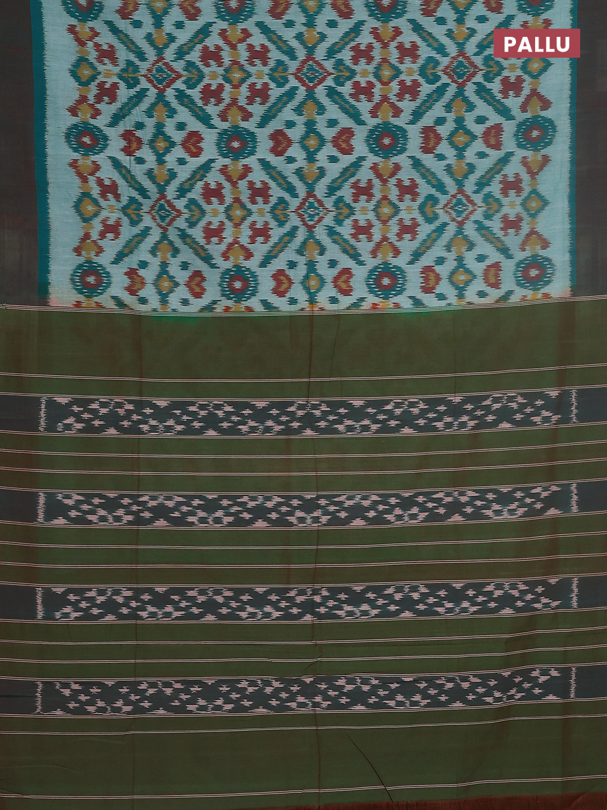 Ikat cotton saree teal green and broon with allover ikat butta weaves and simple border