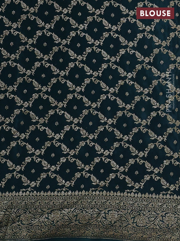 Banarasi crepe saree green and peacock blue with allover geometric zari weaves and woven border