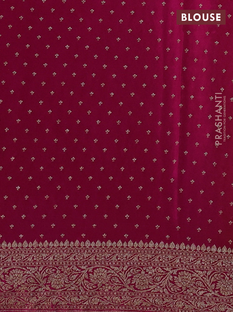 Banarasi crepe saree magenta pink with allover thread & zari geometric weaves and woven border