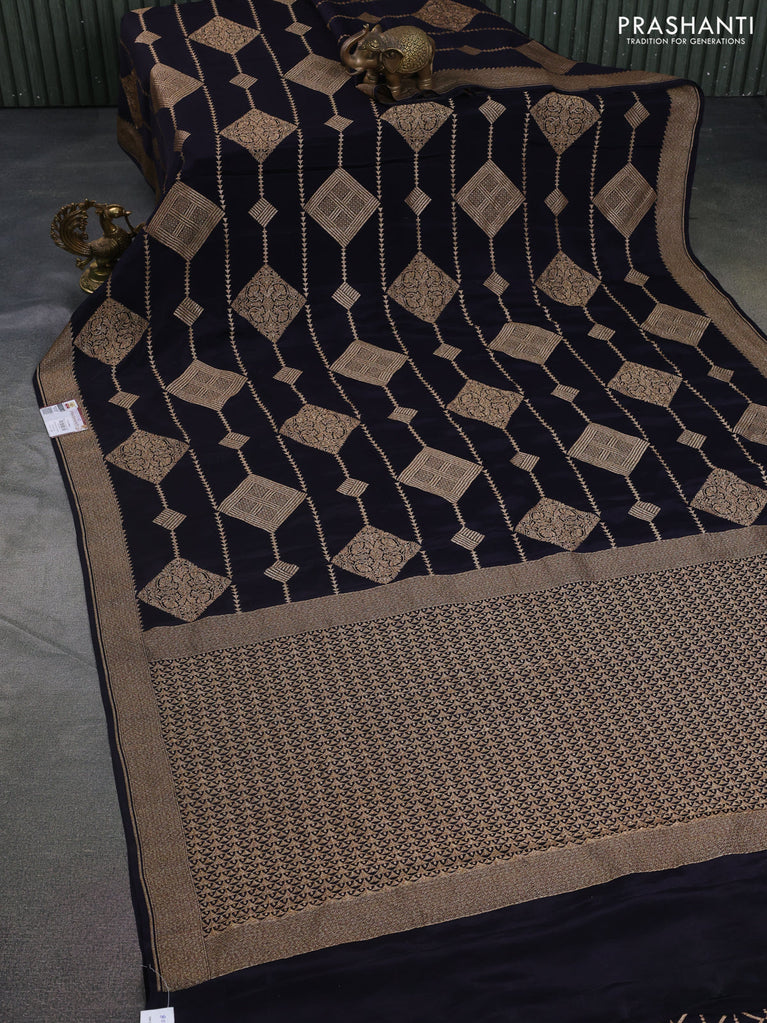 Banarasi crepe saree black with allover thread & zari weaves and woven border