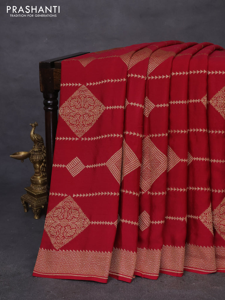 Banarasi crepe saree maroon with allover thread & zari geometric weaves and woven border