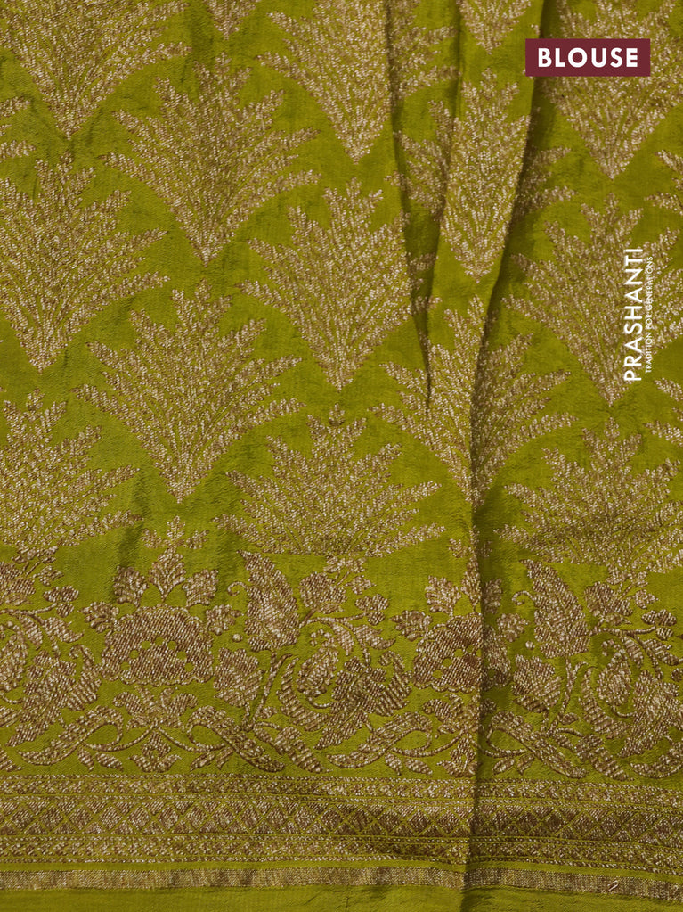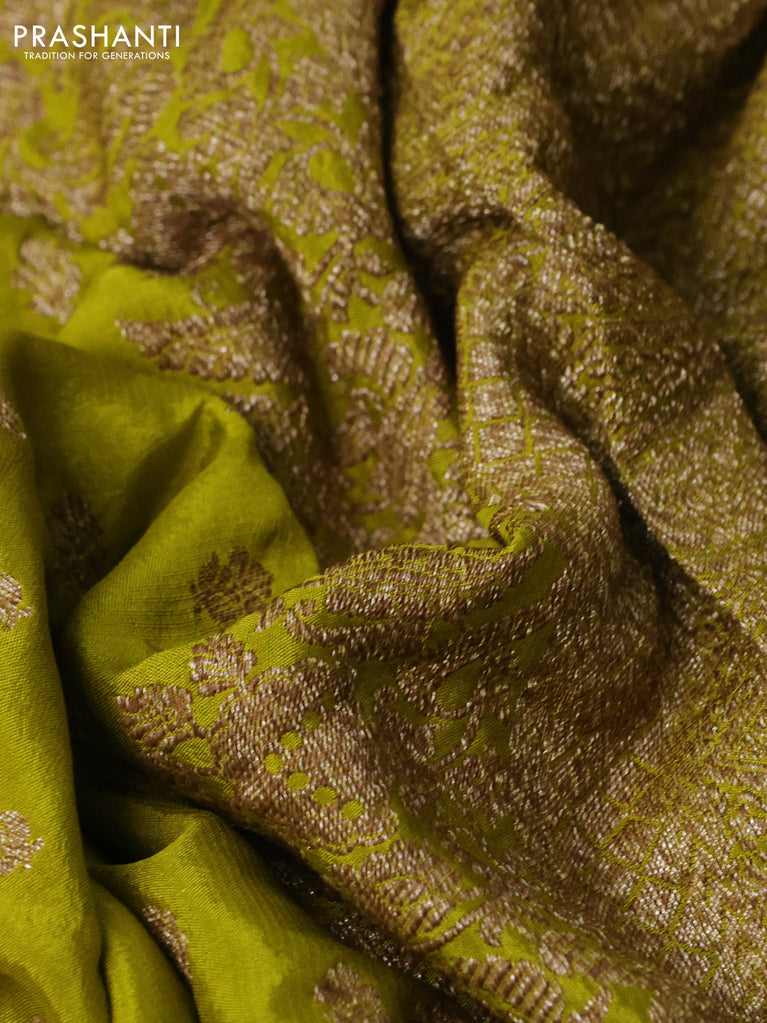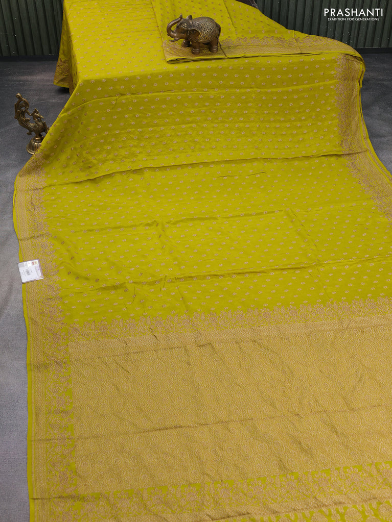 Banarasi crepe saree lime yellow with allover thread & zari woven buttas and woven border