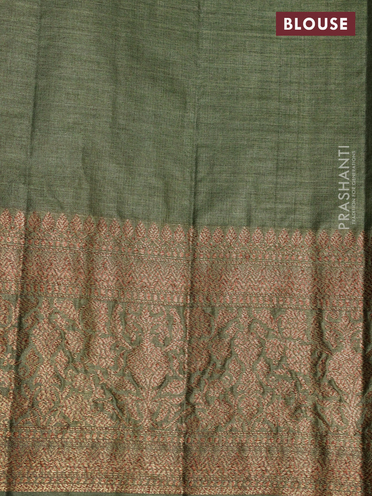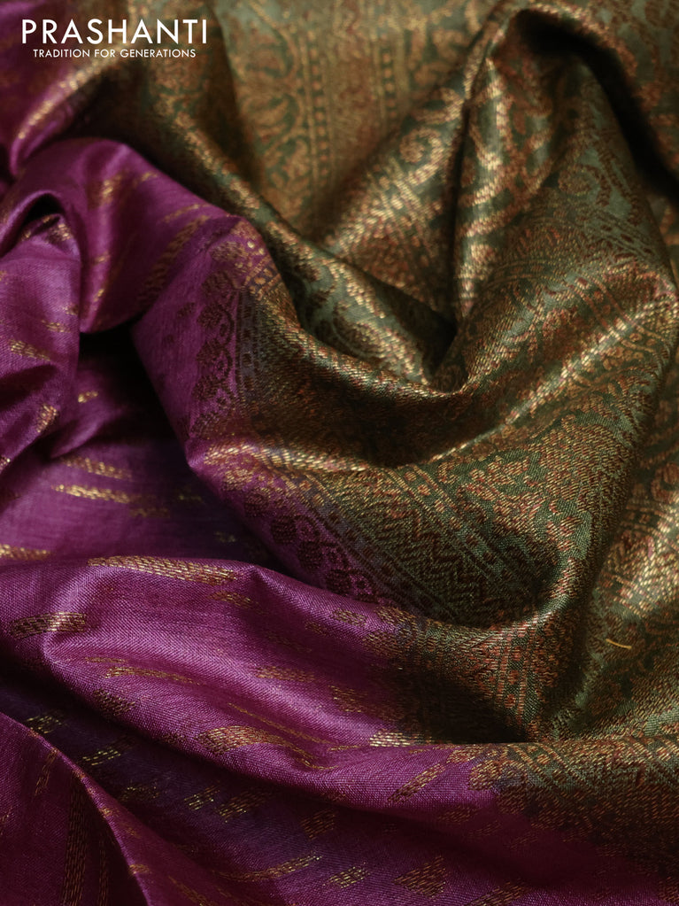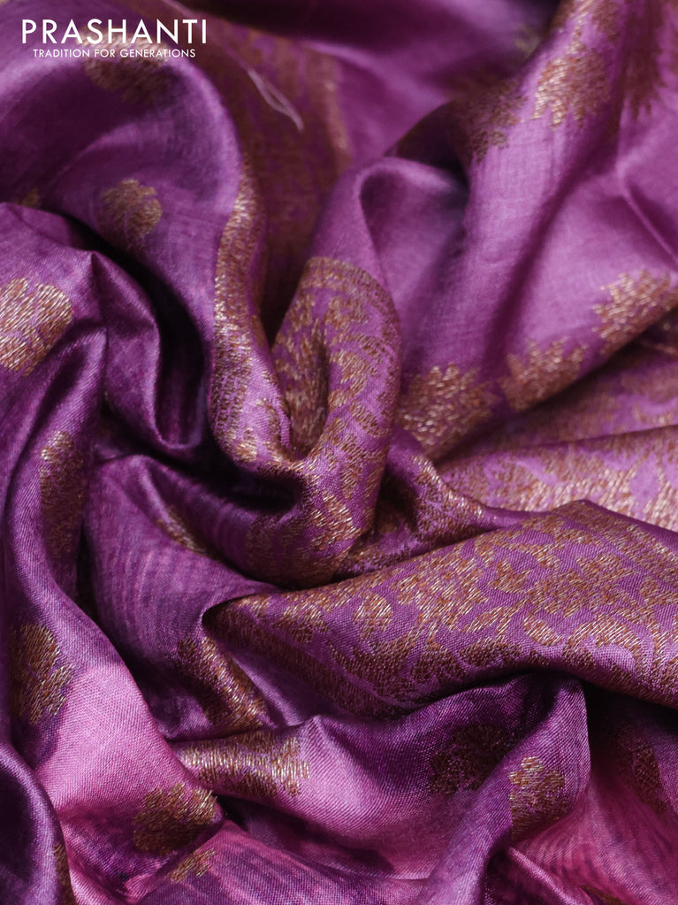 Banarasi tussar silk saree purple shade and green with allover thread & zari buttas and banarasi style border