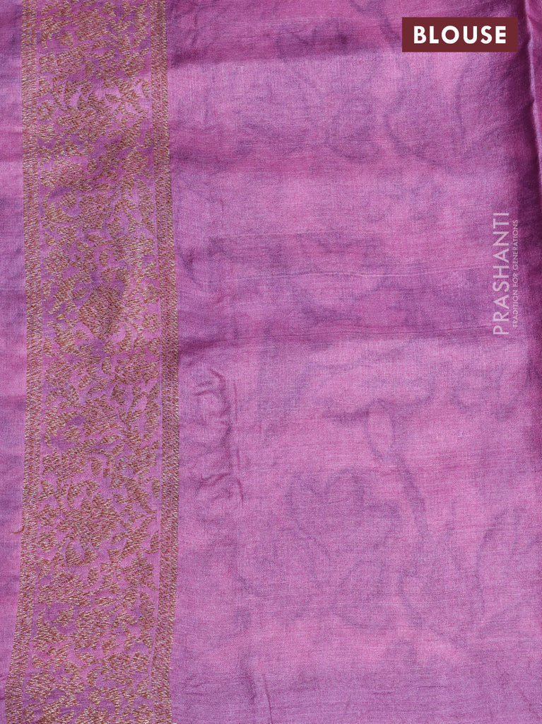 Banarasi tussar silk saree purple shade with woven buttas & floral digital prints and piping border