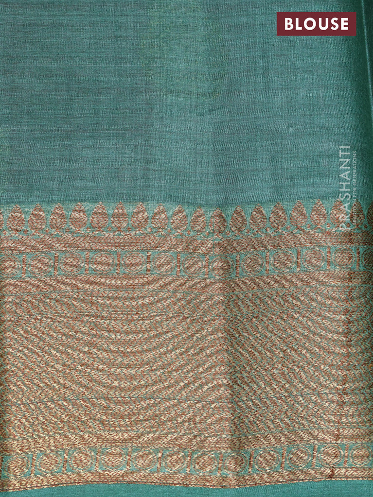 Banarasi tussar silk saree peach pink and teal green shade with thread & zari buttas and banarasi style border