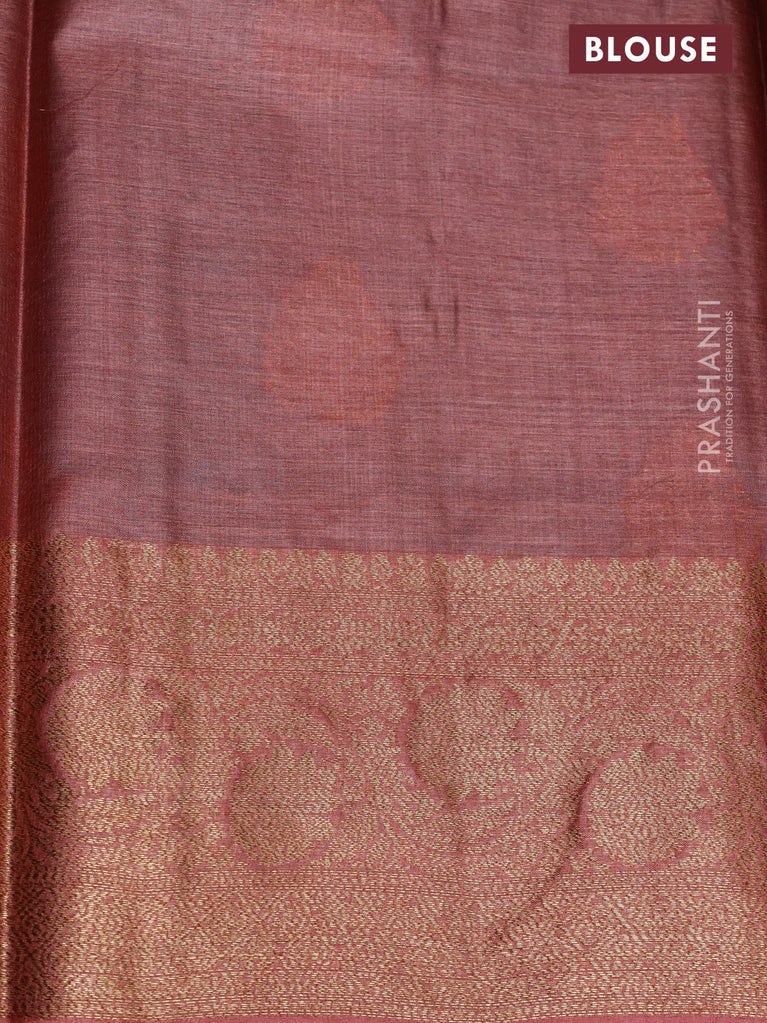 Banarasi tussar silk saree rosey brown with woven buttas & digital prints in borderless style