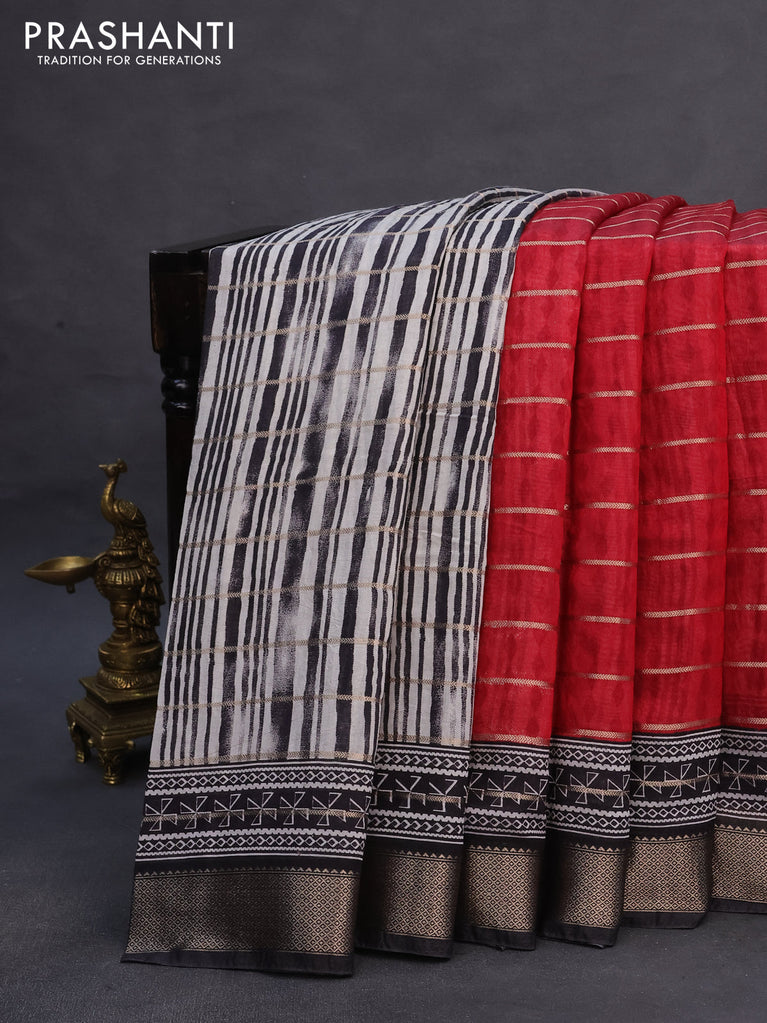 Assam partly silk saree maroon and black with digital prints & zari weaves and zari woven border
