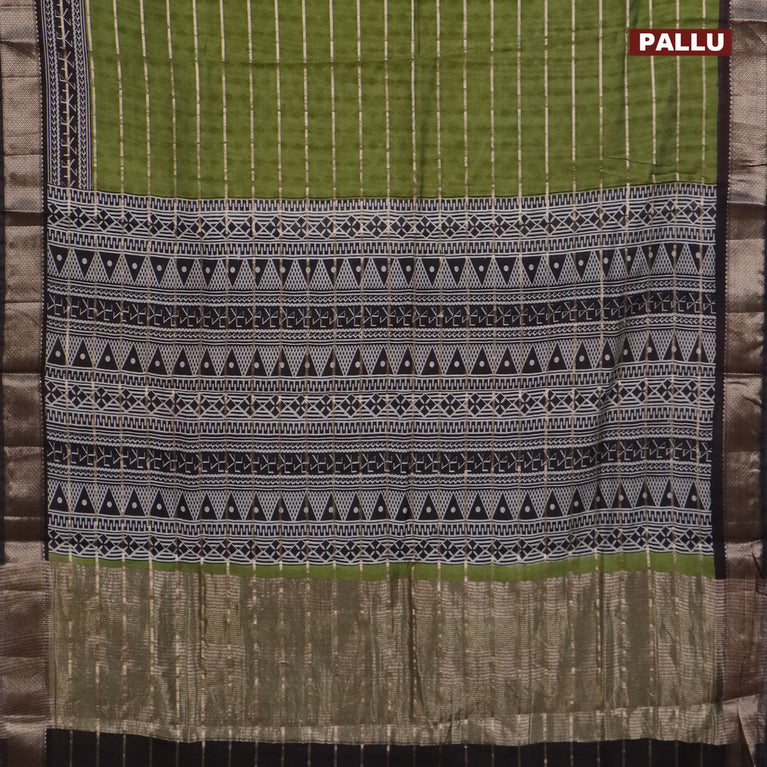 Assam partly silk saree mehendi green and black with digital prints & zari weaves and zari woven border