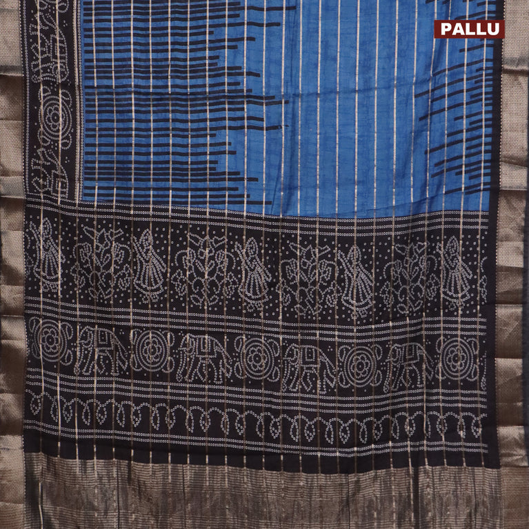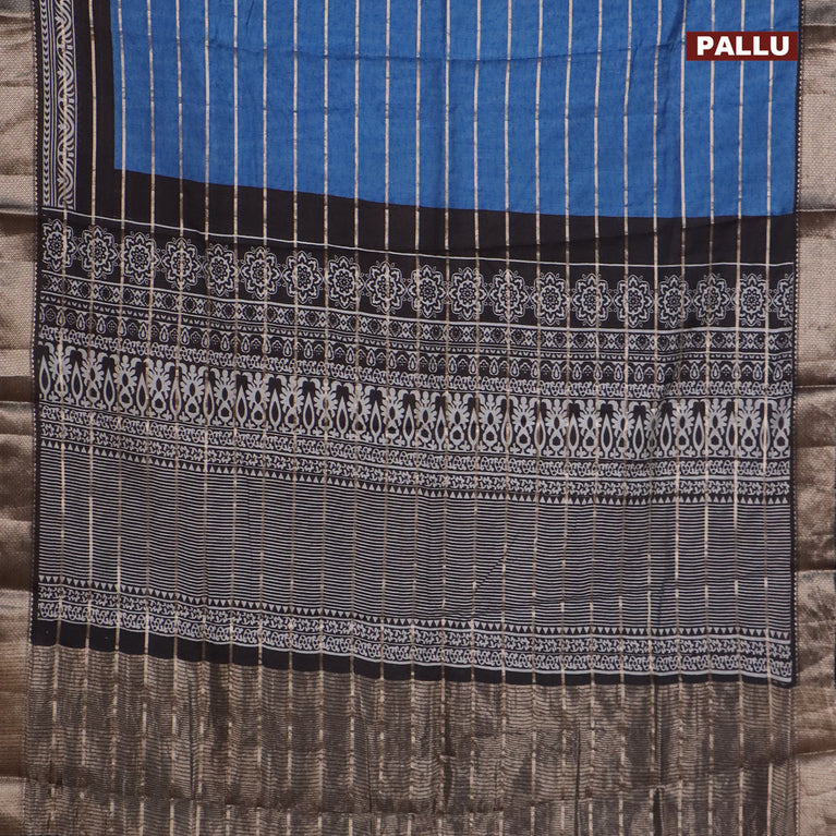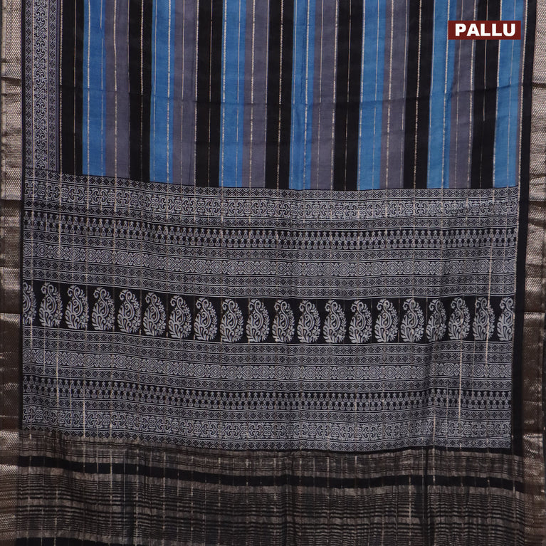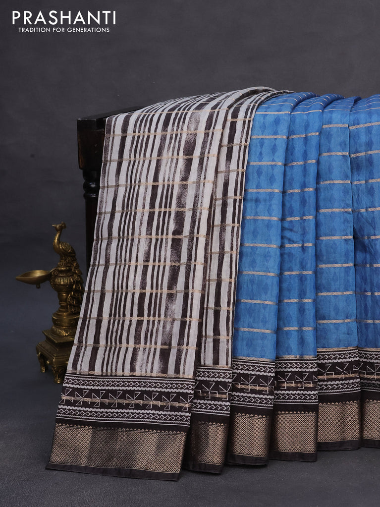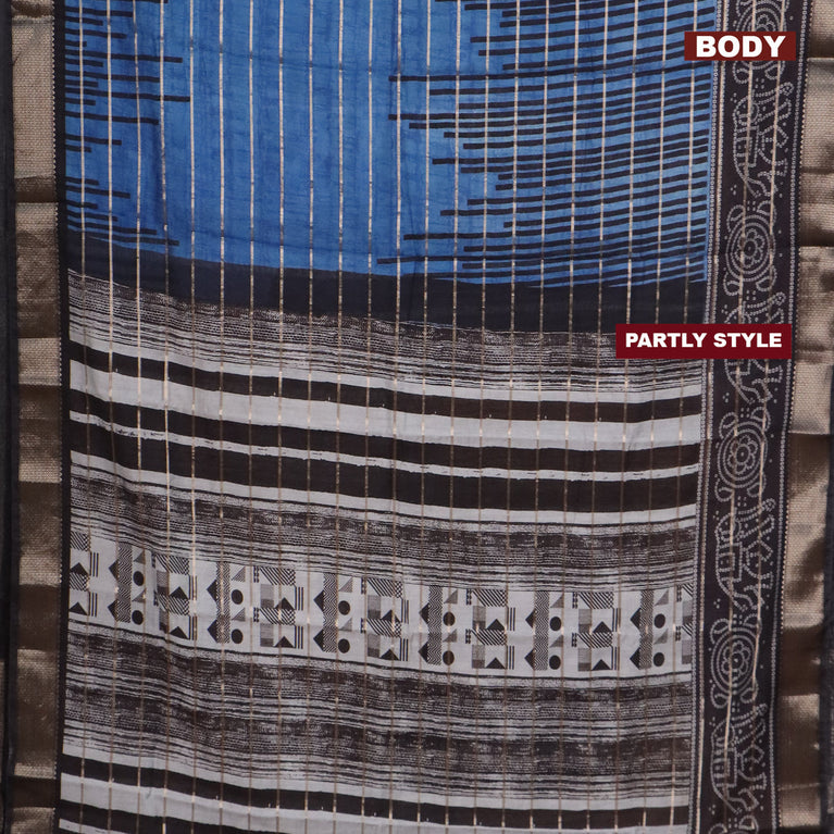 Assam partly silk saree blue and black with allover digital prints & zari weaves and zari woven border