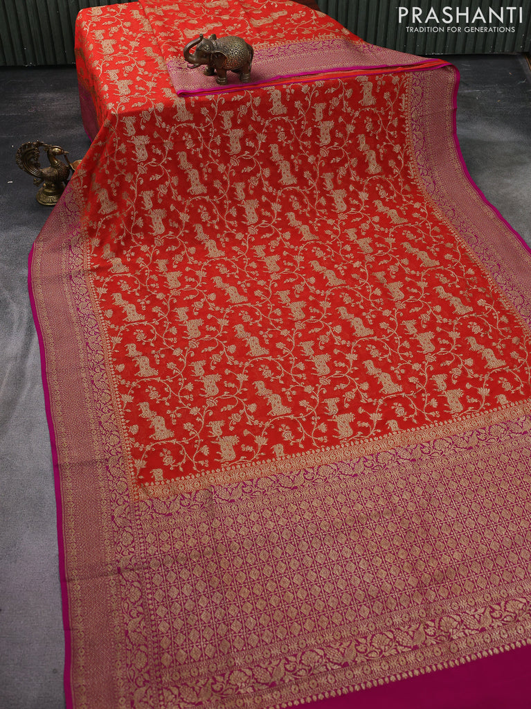 Banarasi georgette saree orange and pink with allover thread & zari weaves and woven border