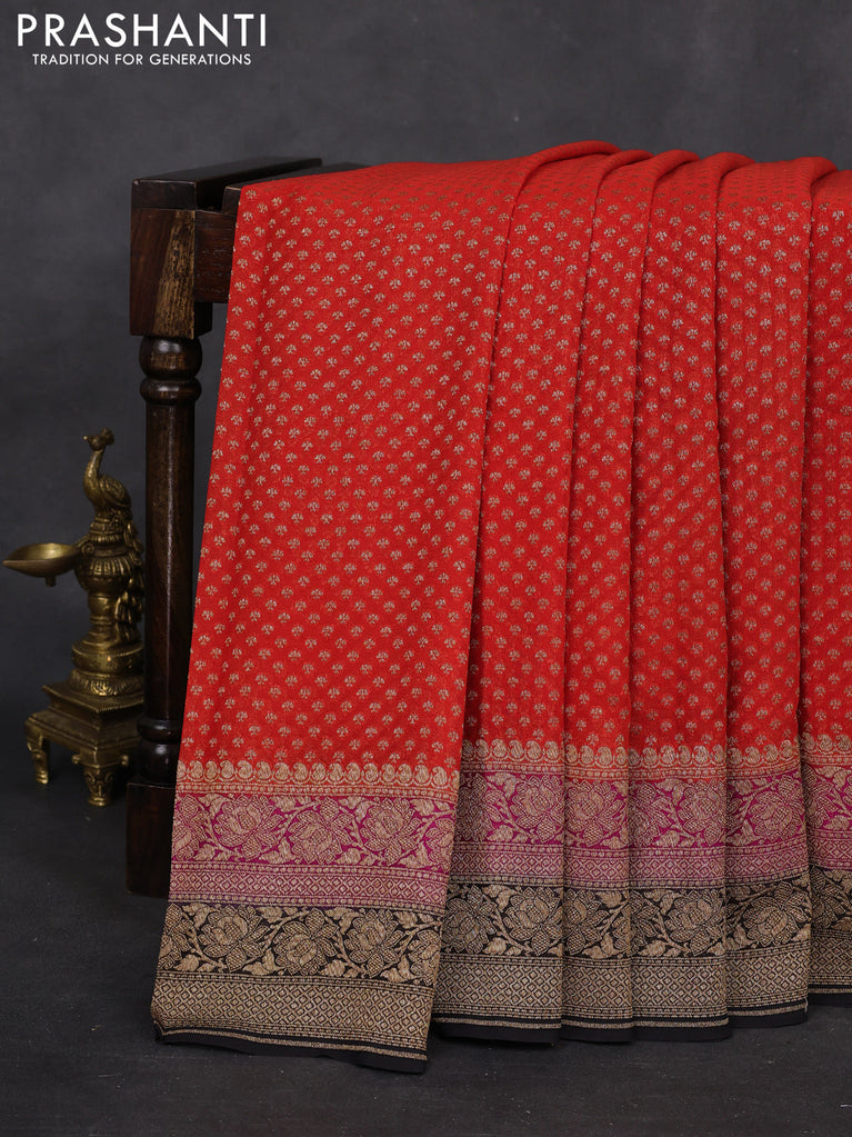 Banarasi georgette saree orange and pink black with allover woven buttas and woven border