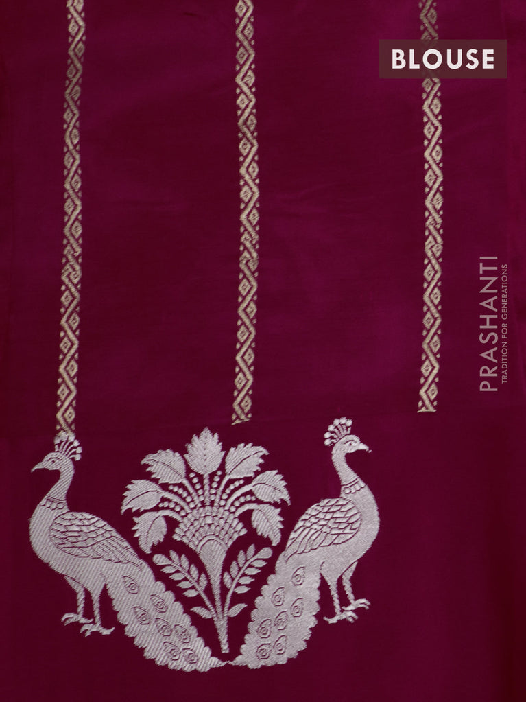 Banarasi poona silk saree purple and lavender with silver zari woven buttas and rich zari woven border