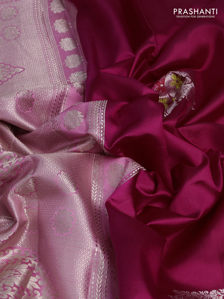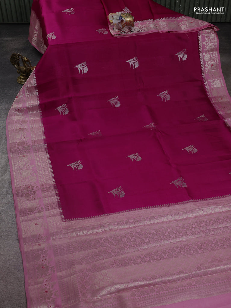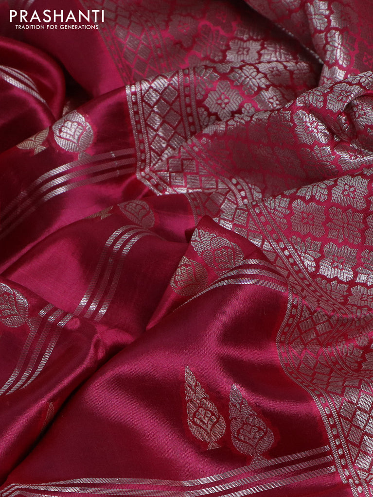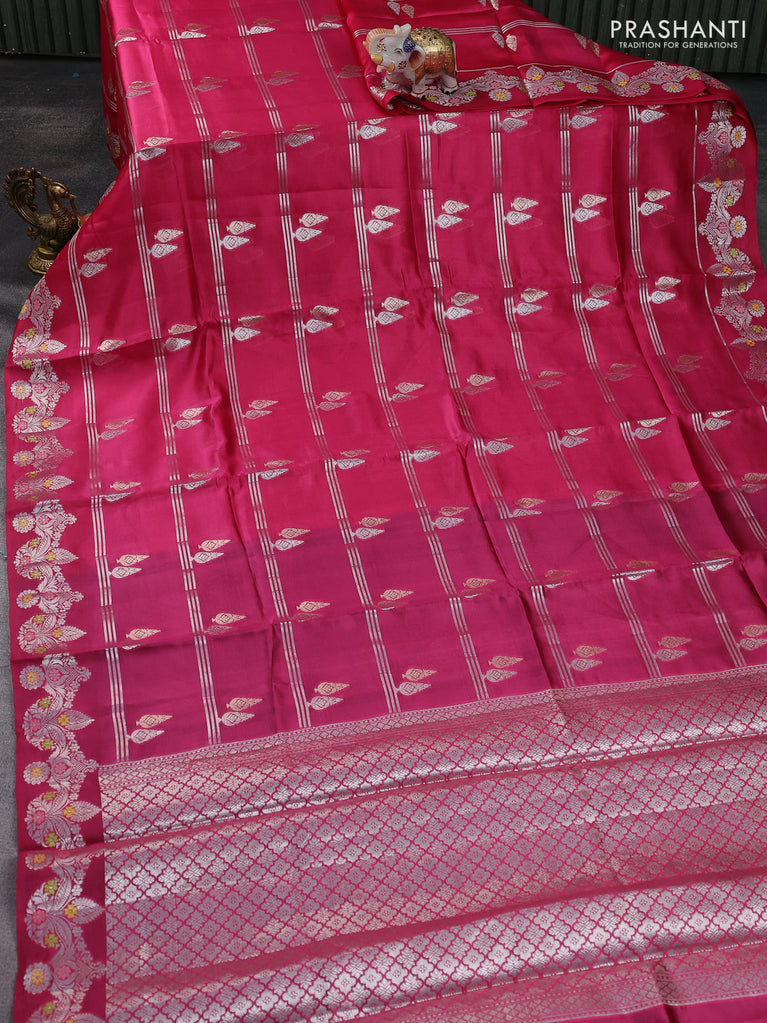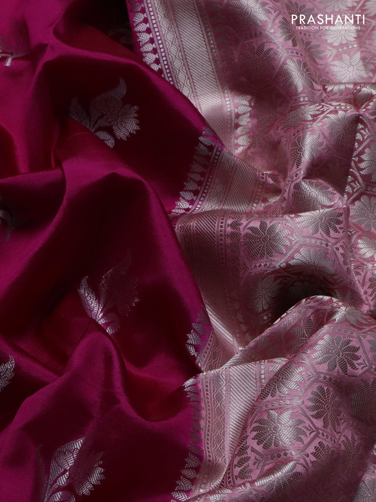 Banarasi poona silk saree dark pink and light pink with silver zari woven buttas and rich zari woven border