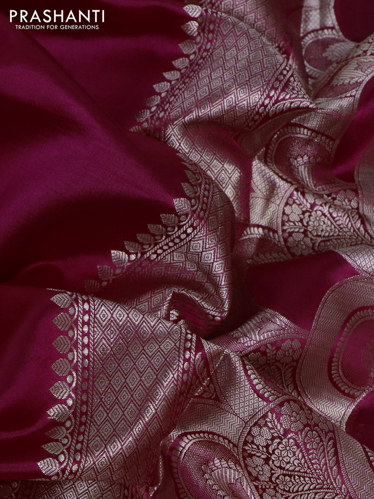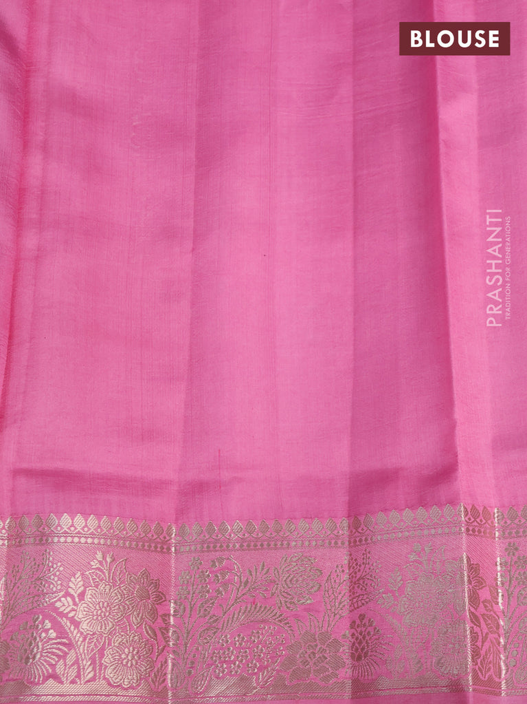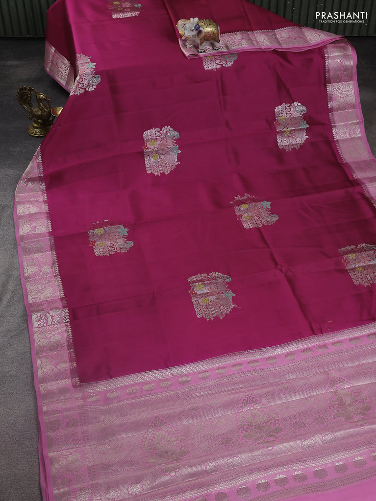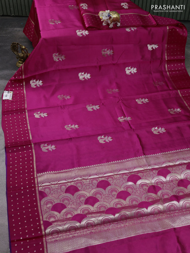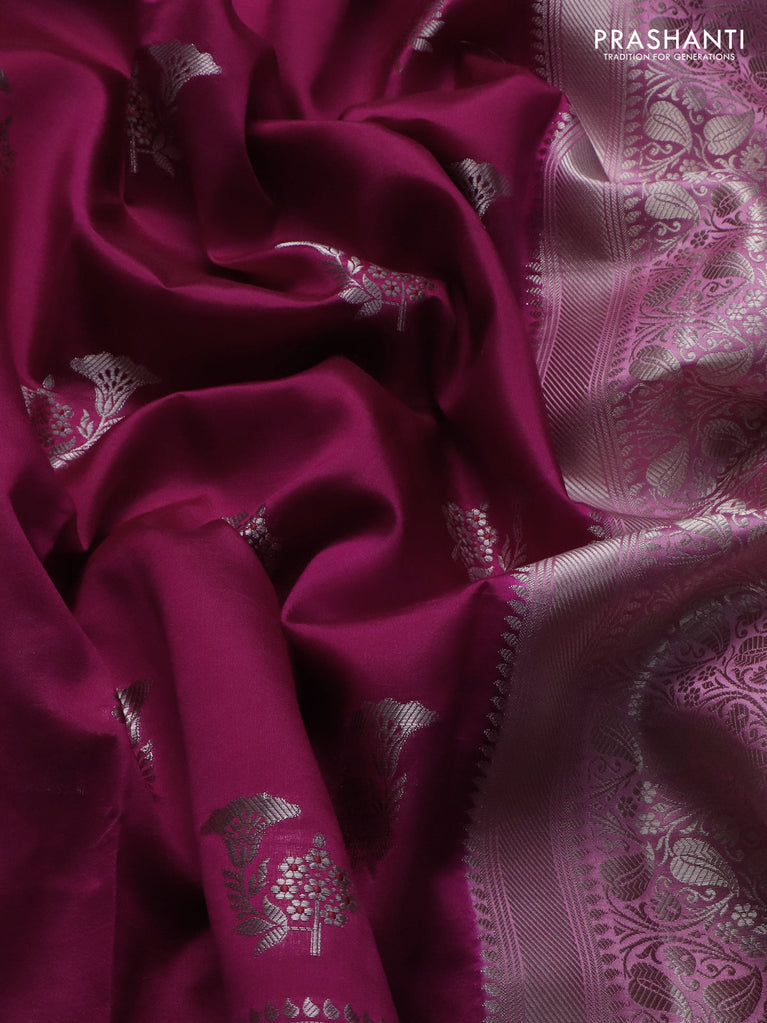 Banarasi poona silk saree dark pink and light pink with silver zari woven buttas and rich zari woven border