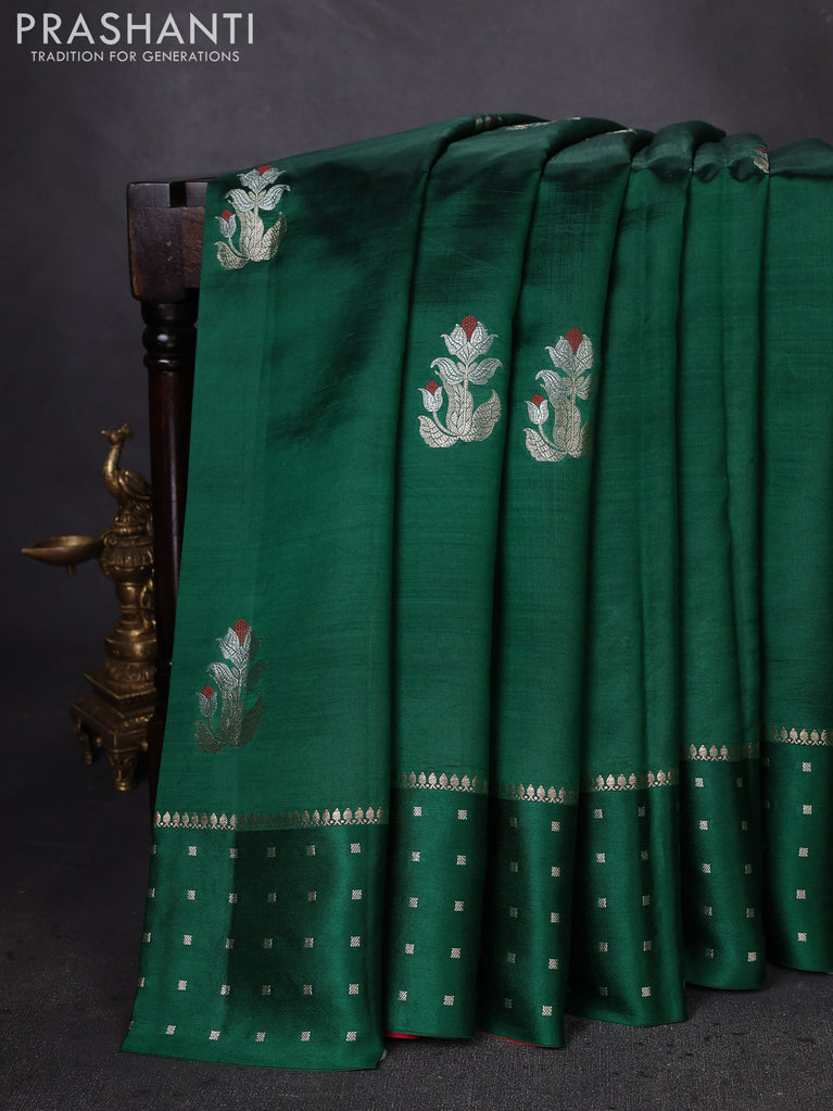 Banarasi poona silk saree green and red with zari woven floral buttas and zari woven butta border