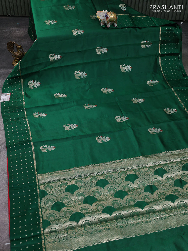 Banarasi poona silk saree green and red with zari woven buttas and zari woven butta border