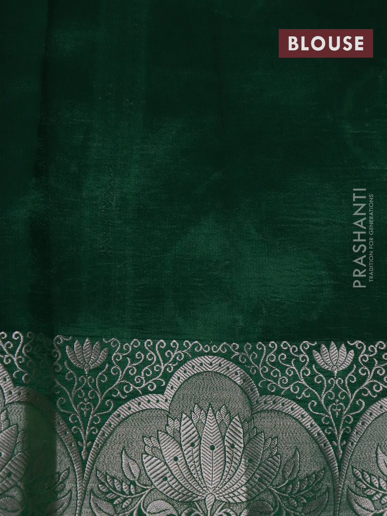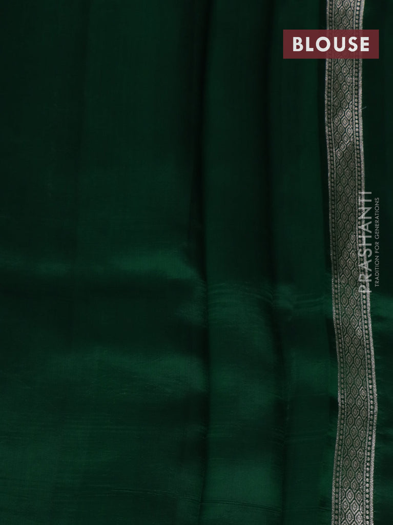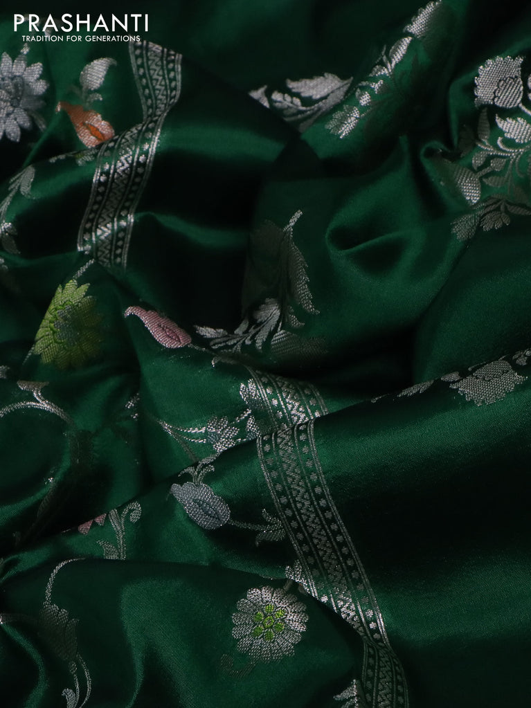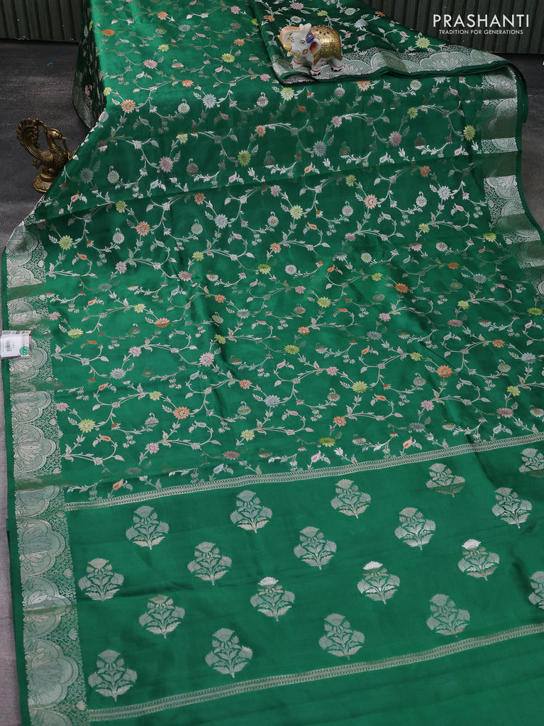 Banarasi poona silk saree green with allover silver zari weaves and silver zari woven border