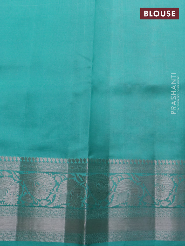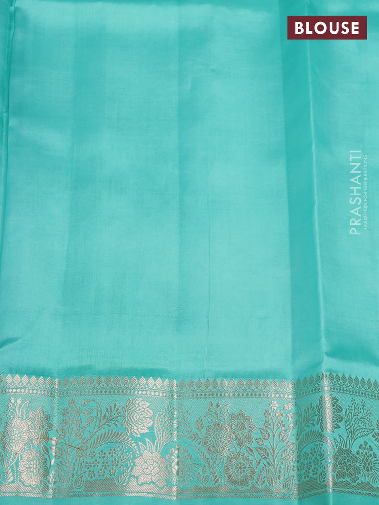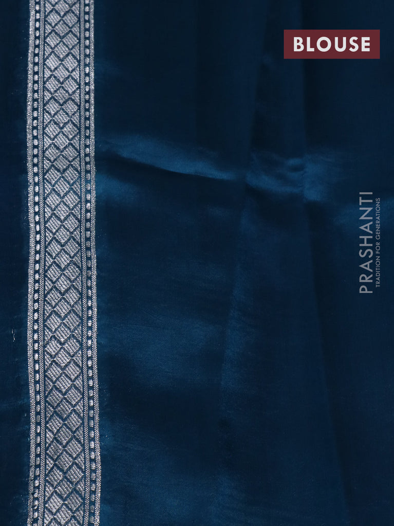 Banarasi poona silk saree pink and peacock blue with silver & gold zari woven buttas and silver zari woven border