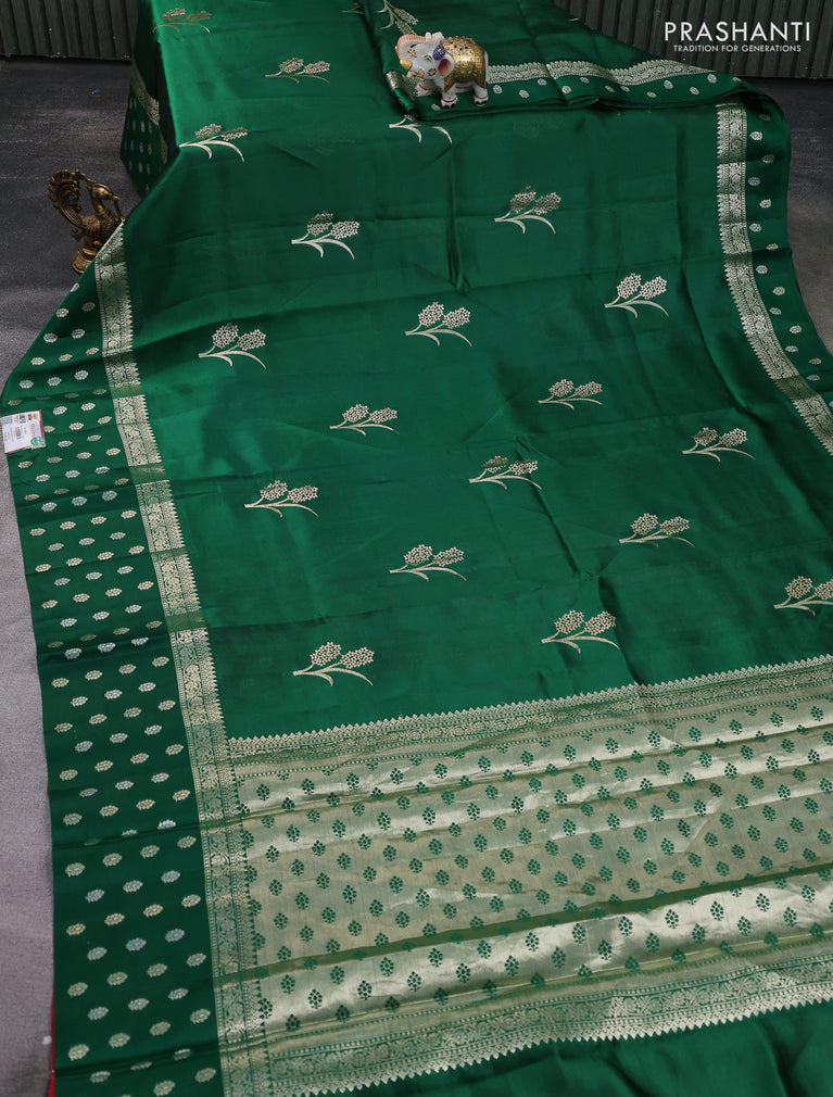 Banarasi poona silk saree green with zari woven buttas and zari woven border