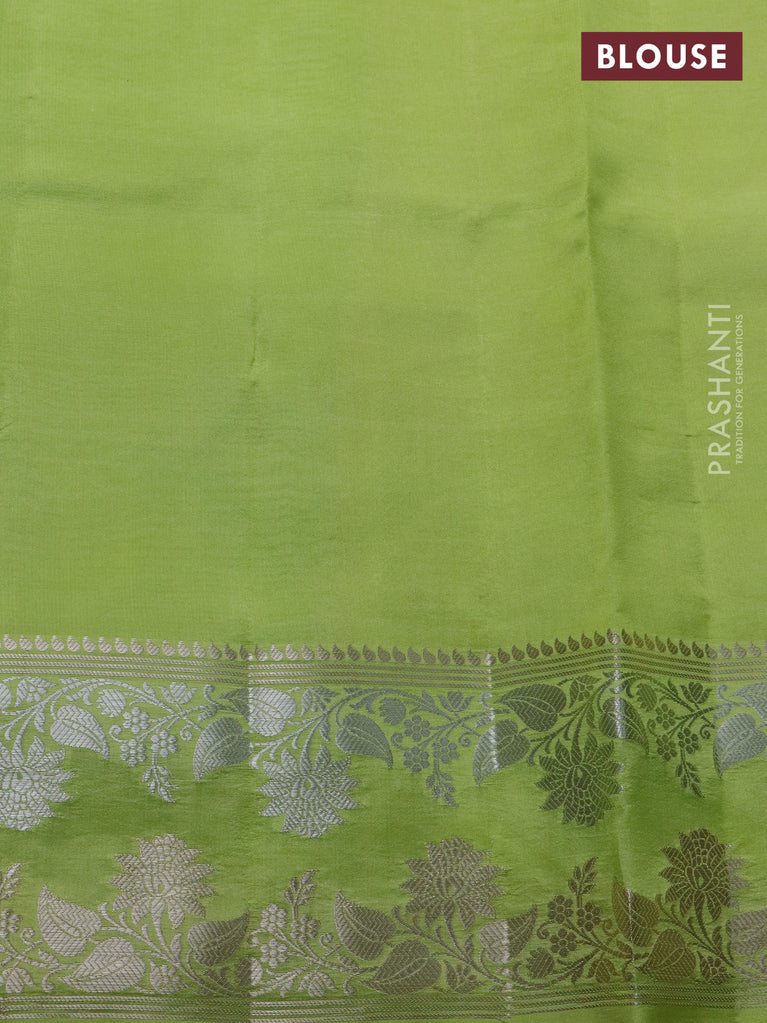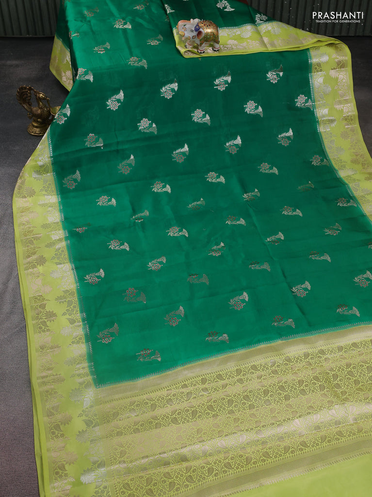 Banarasi poona silk saree lime green with zari woven floral buttas and zari woven border