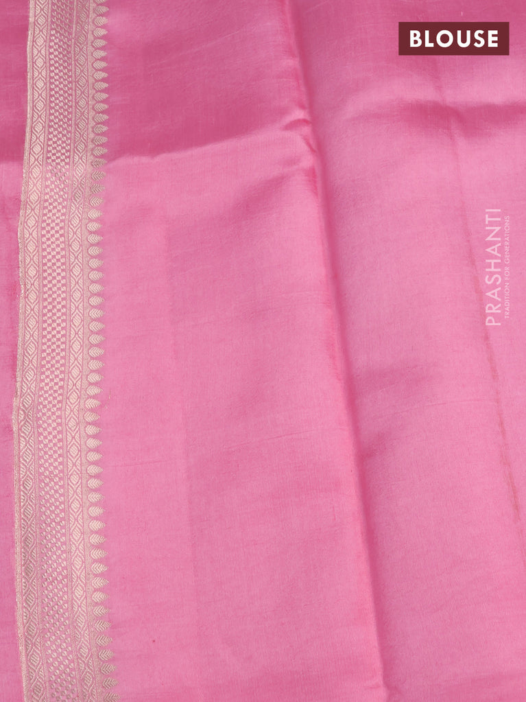 Banarasi poona silk saree light pink with silver & gold zari woven buttas and zari woven butta border