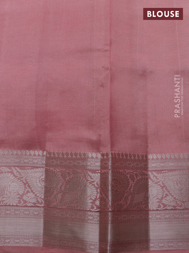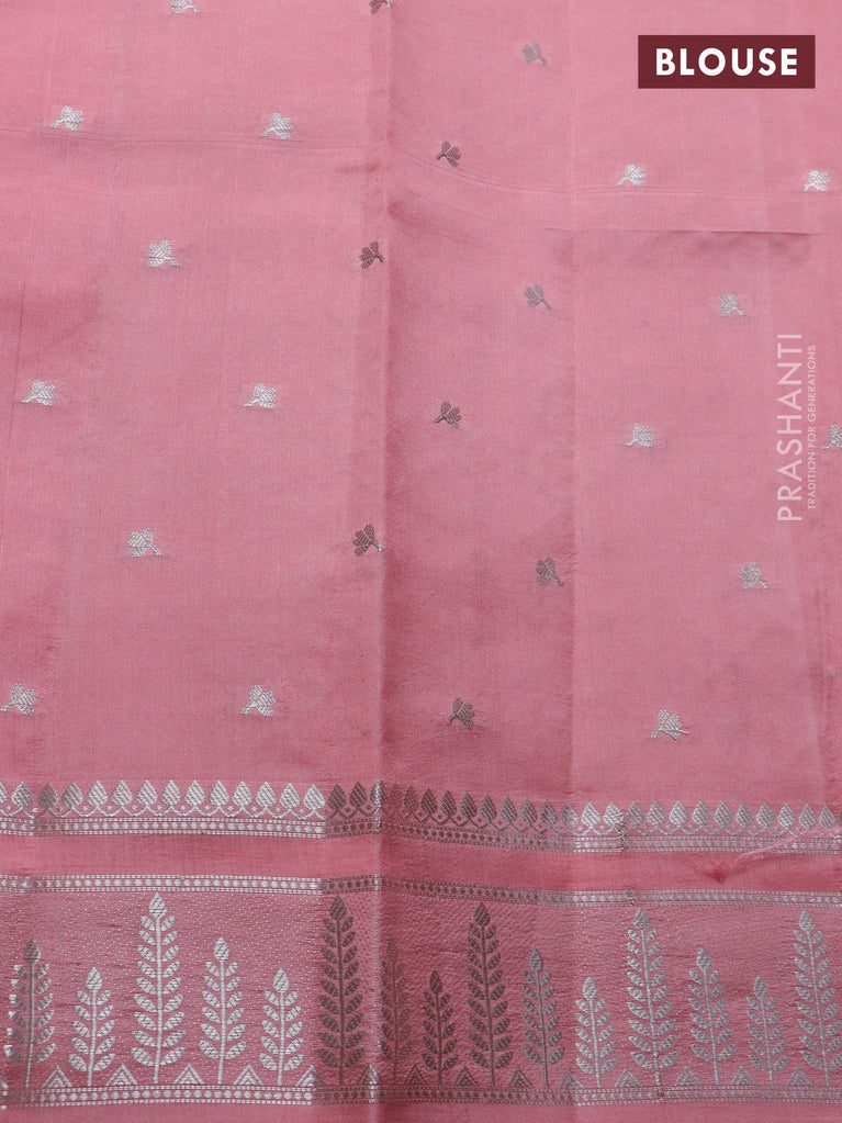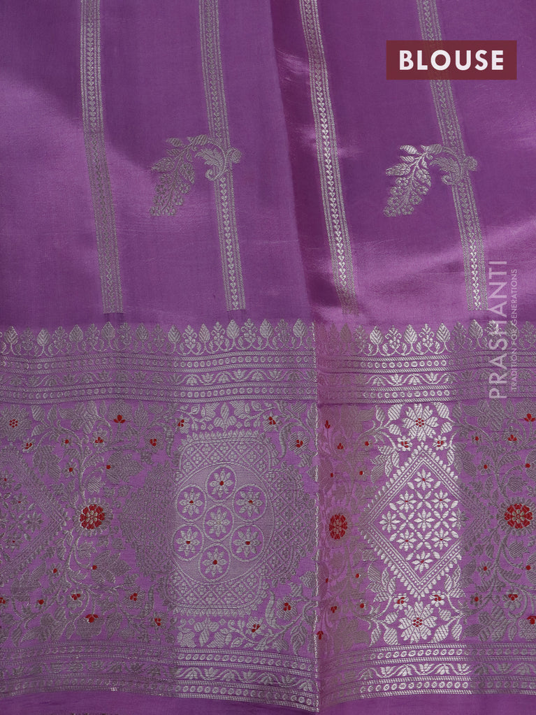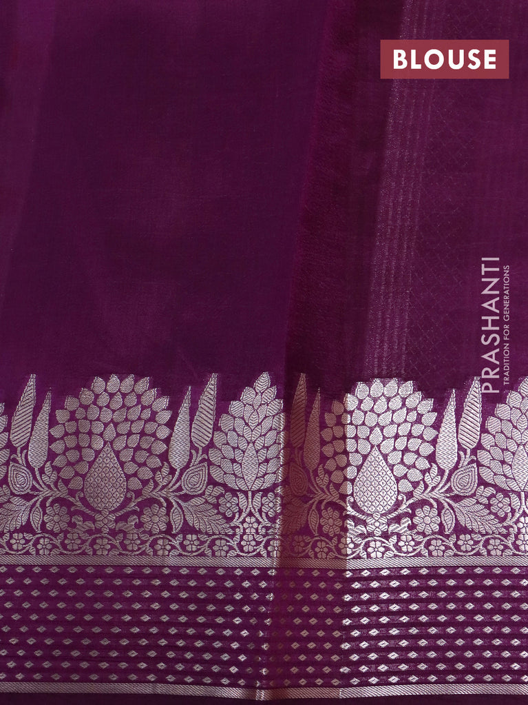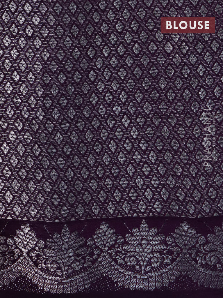 Banarasi poona silk saree wine shade and lavender with silver zari woven buttas and silver zari woven border