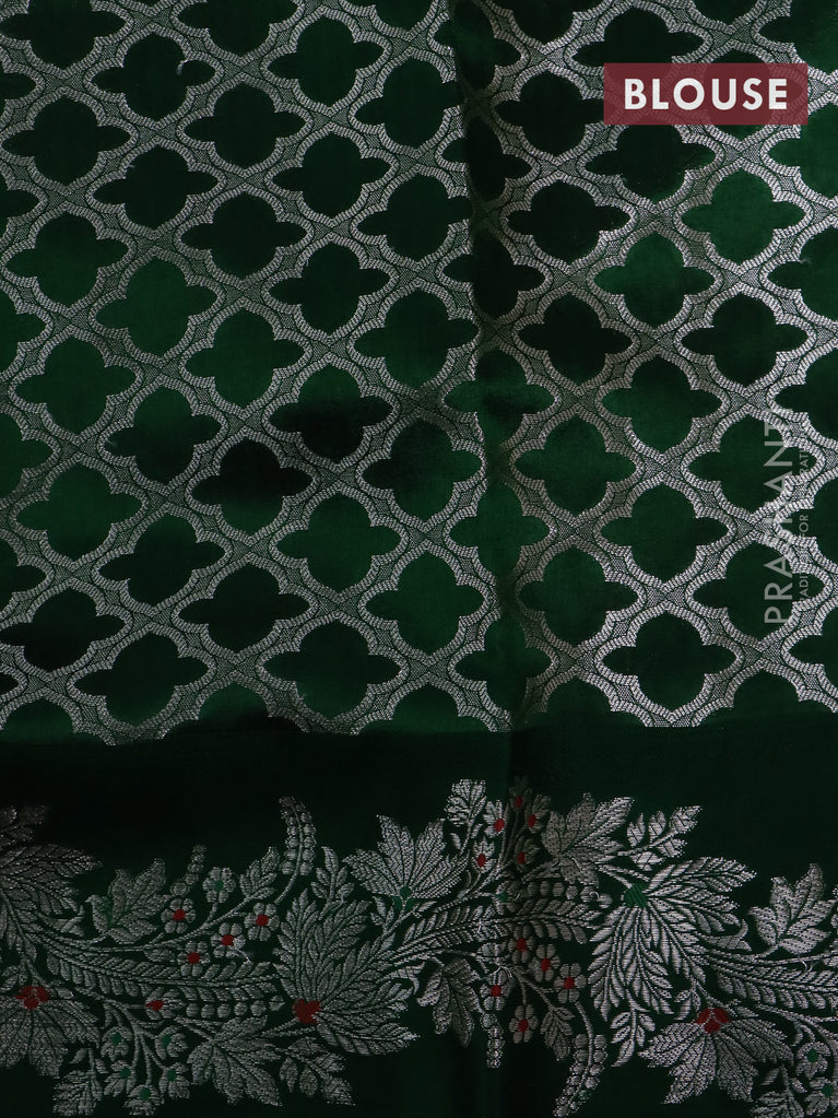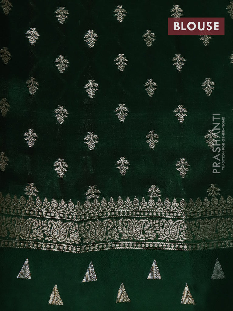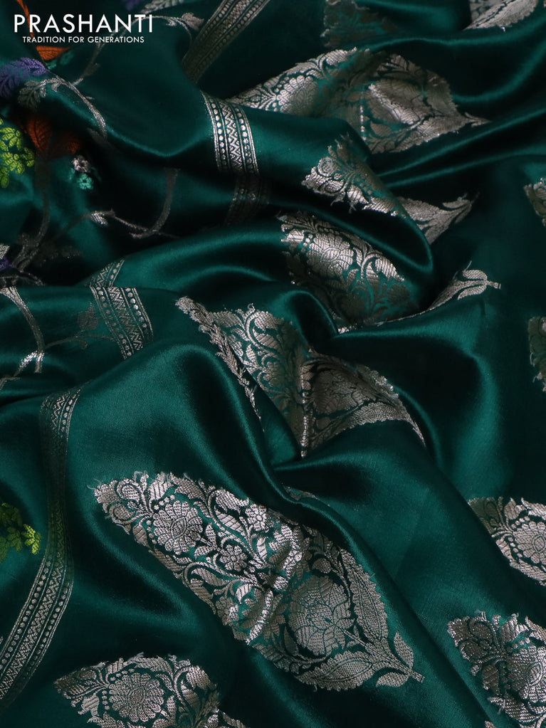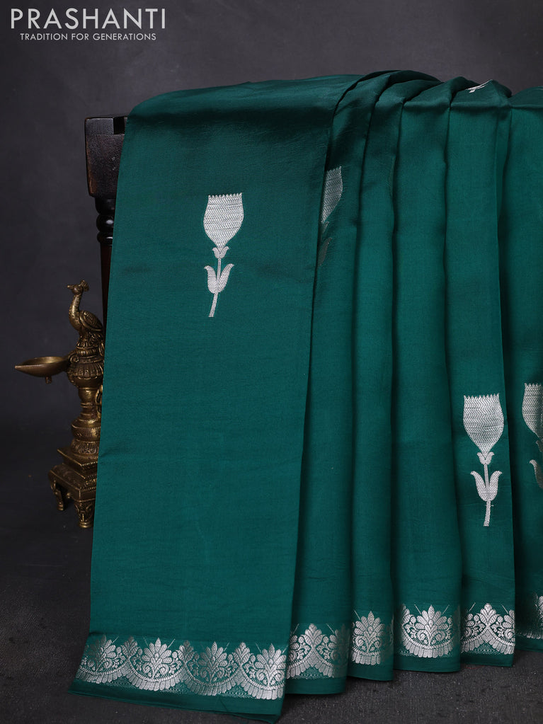 Banarasi poona silk saree teal green with silver zari woven floral buttas and silver zari woven border