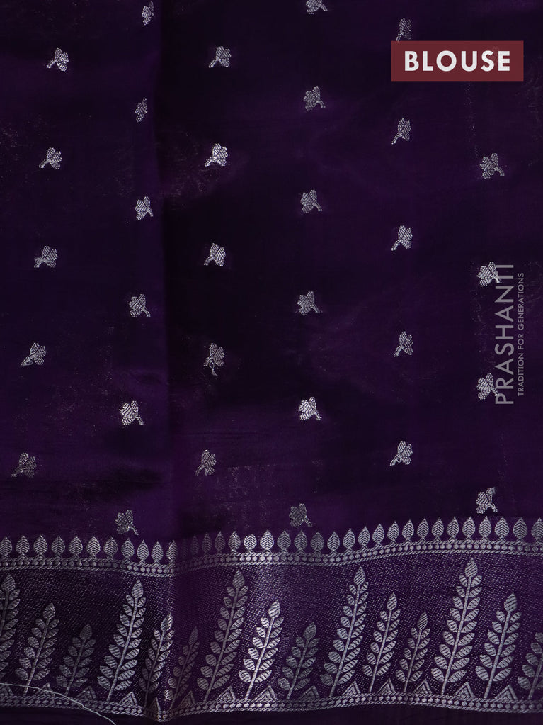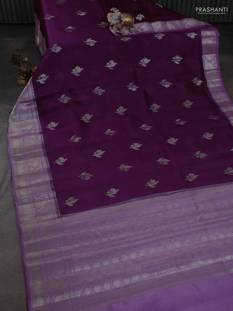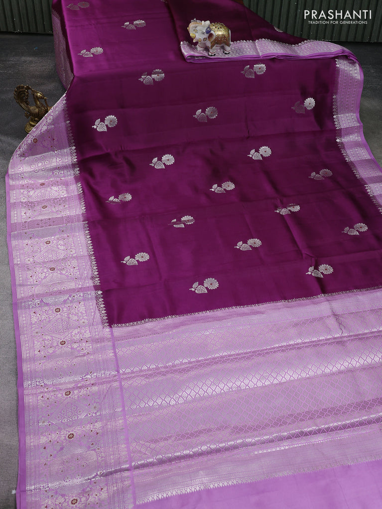 Banarasi poona silk saree purple with zari woven floral buttas and silver zari woven border