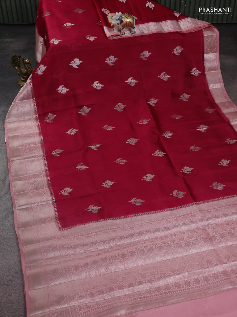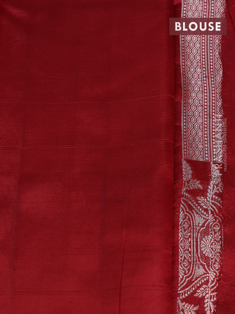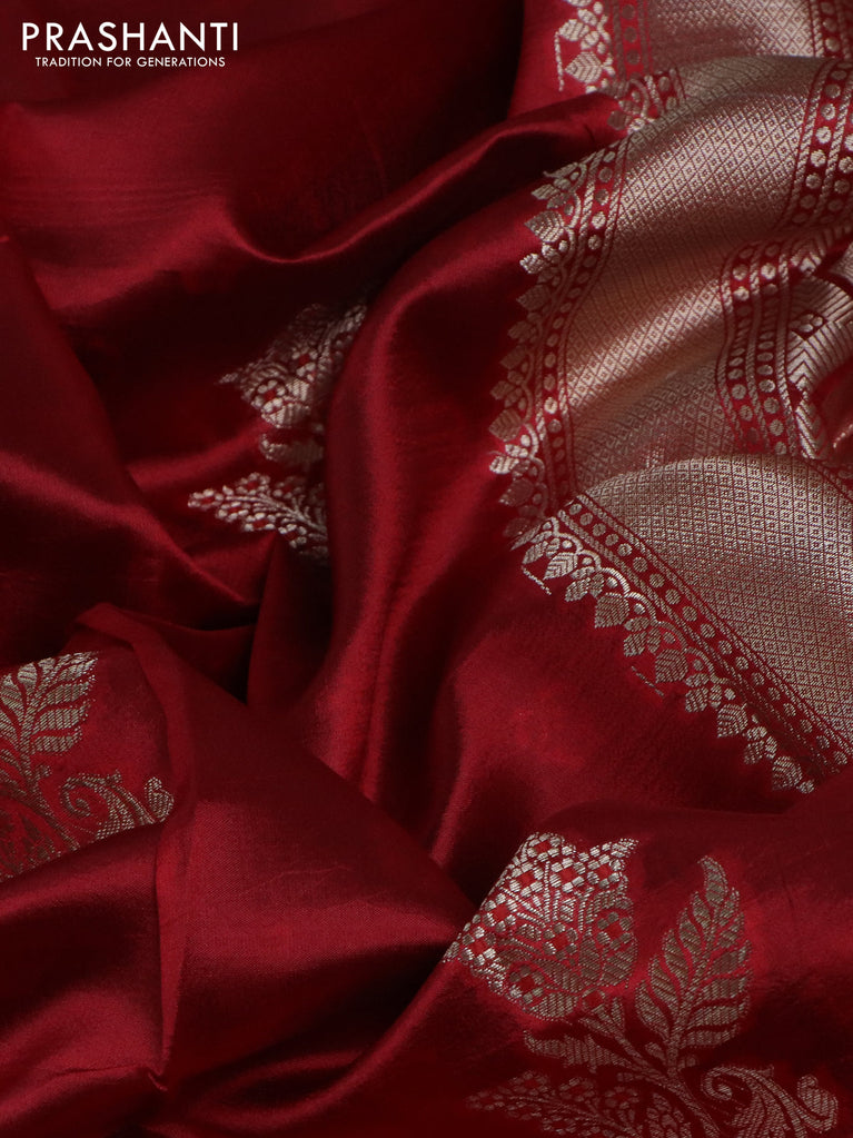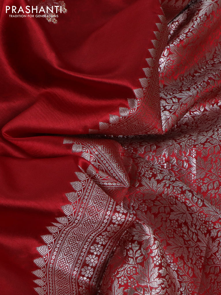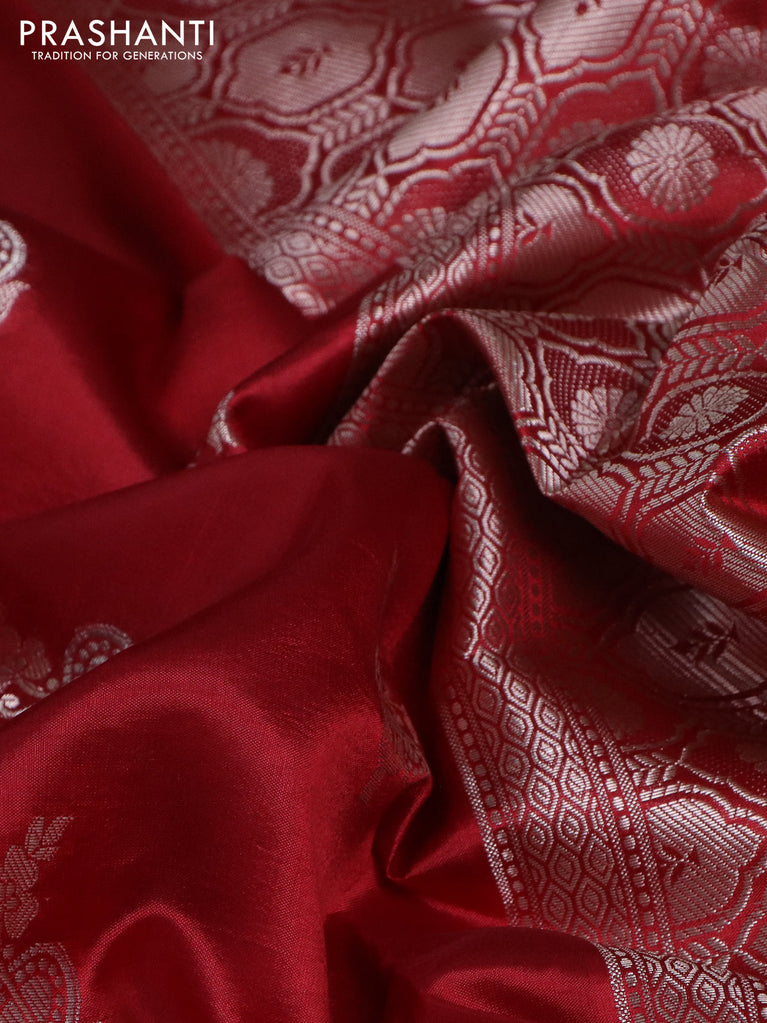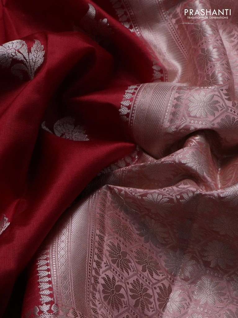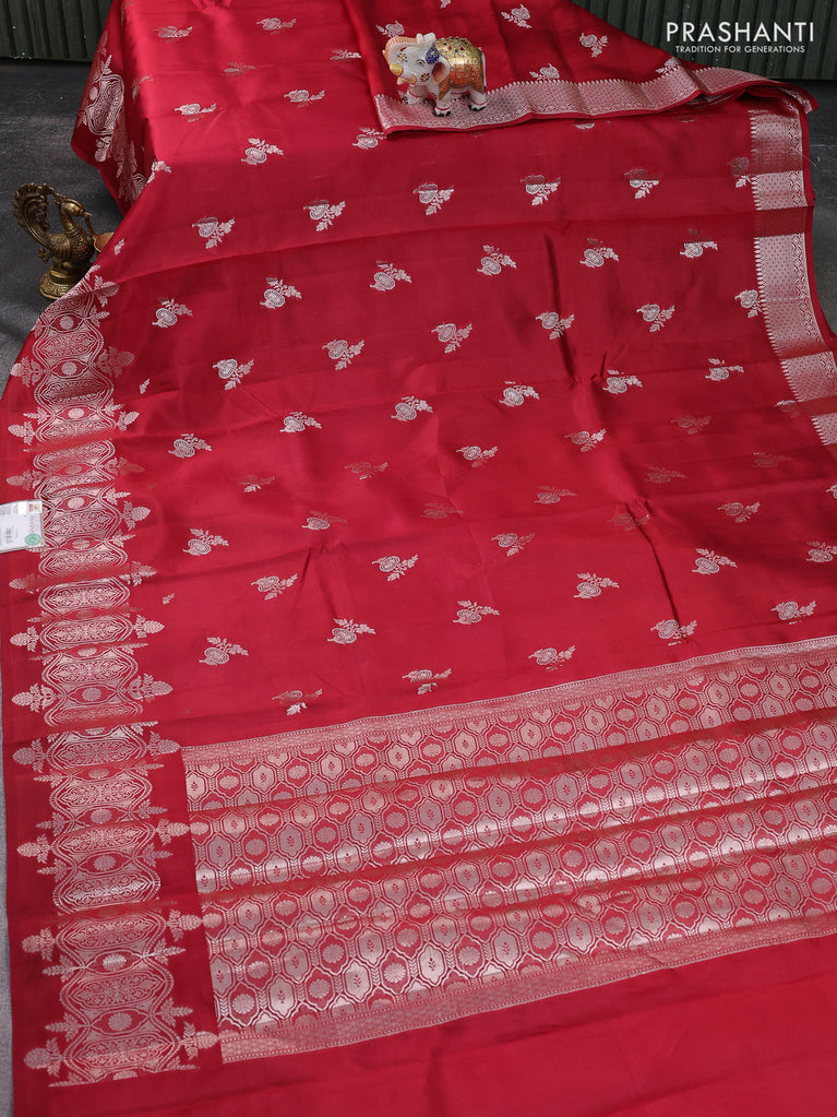 Banarasi poona silk saree red with silver zari woven buttas and silver zari woven border