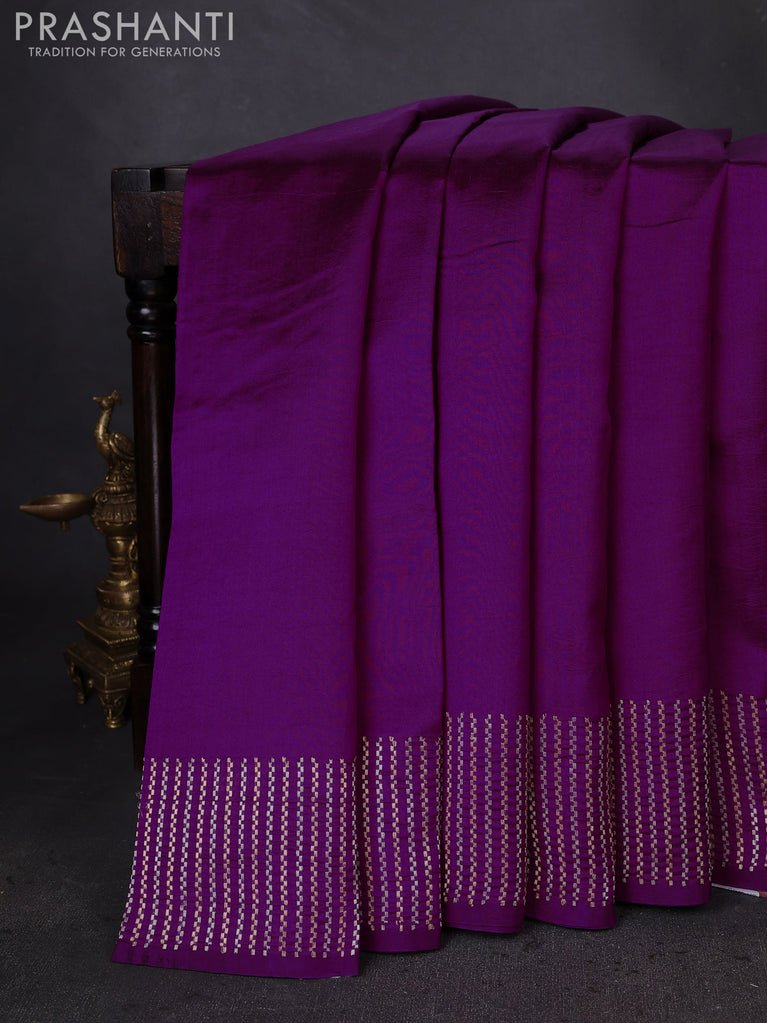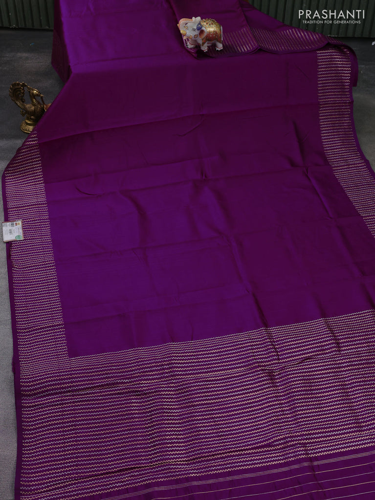 Banarasi poona silk saree purple with plain body and zari woven border