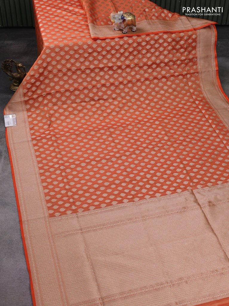 Banarasi tissue silk saree orange with allover zari woven buttas and zari woven border