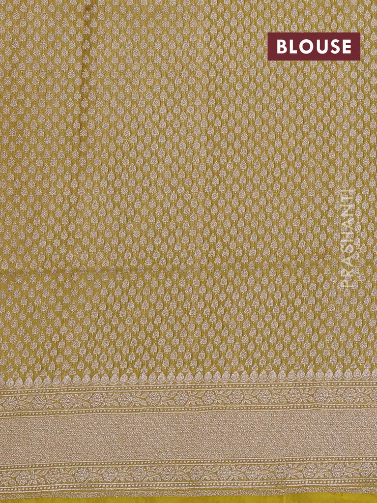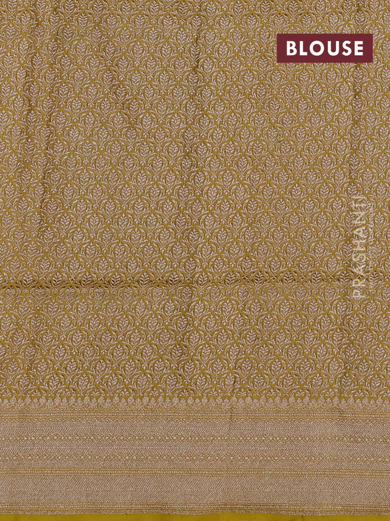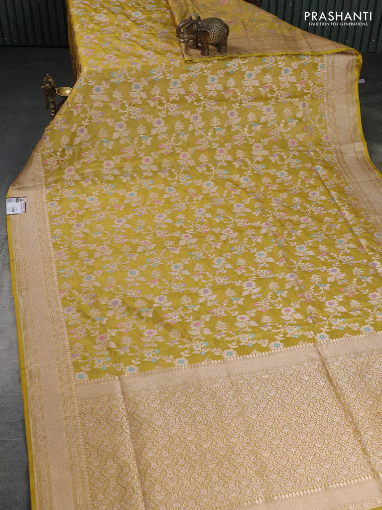Banarasi tissue silk saree lime yellow with allover zari woven brocade weaves and zari woven border