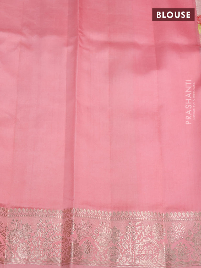 Banarasi tissue silk saree pink with allover zari woven brocade weaves and zari woven border