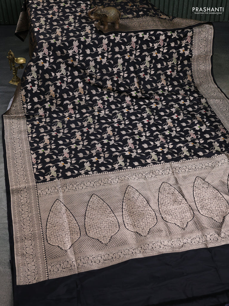 Banarasi uppada silk saree black with allover zari woven brocade weaves and zari woven border