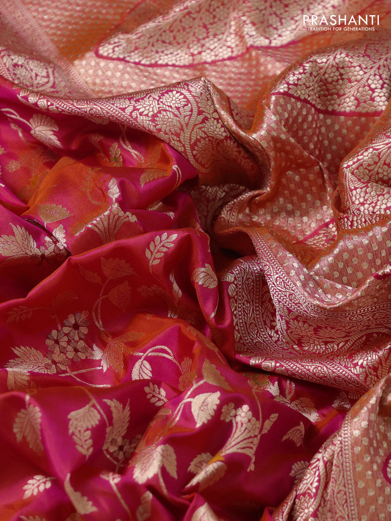 Banarasi uppada silk saree dual shade of pinkish orange with allover zari woven brocade weaves and zari woven border