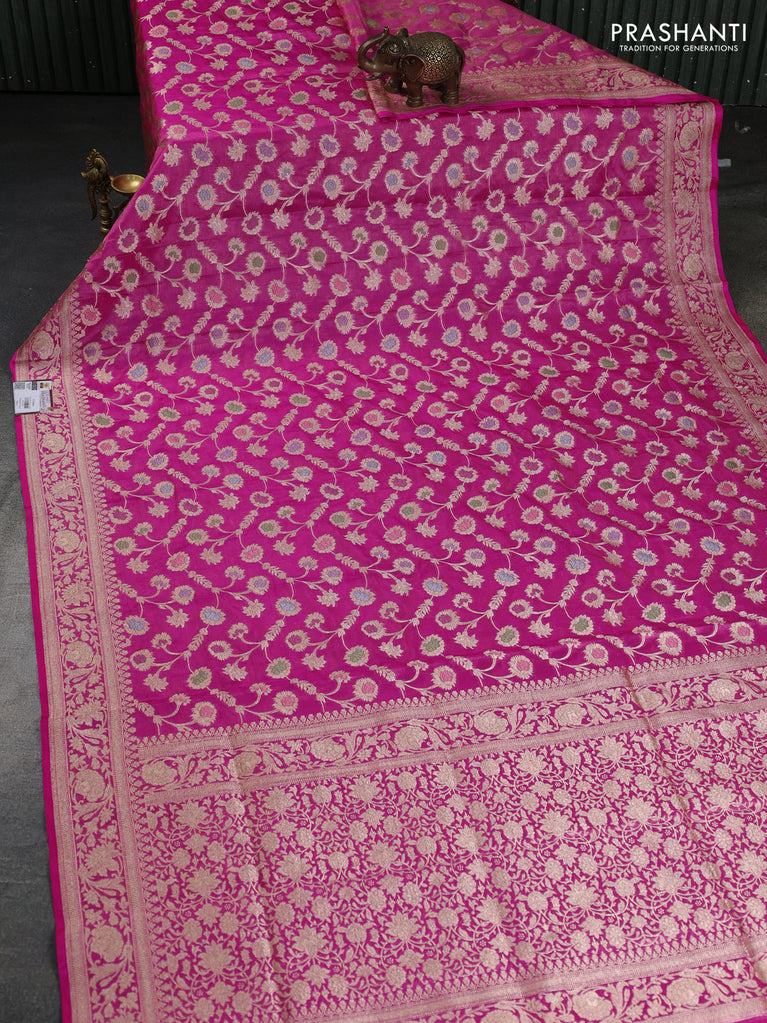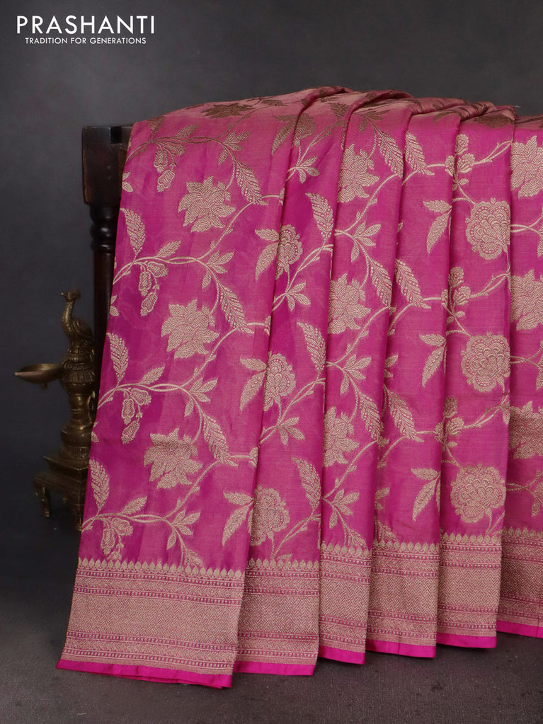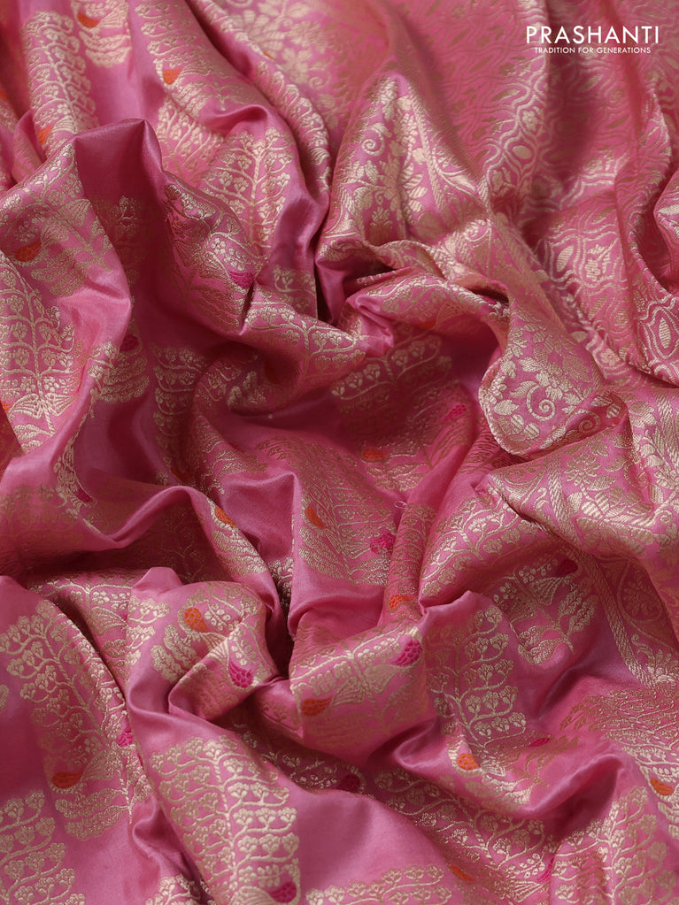 Banarasi tissue silk saree pink with allover zari woven brocade weaves and zari woven border