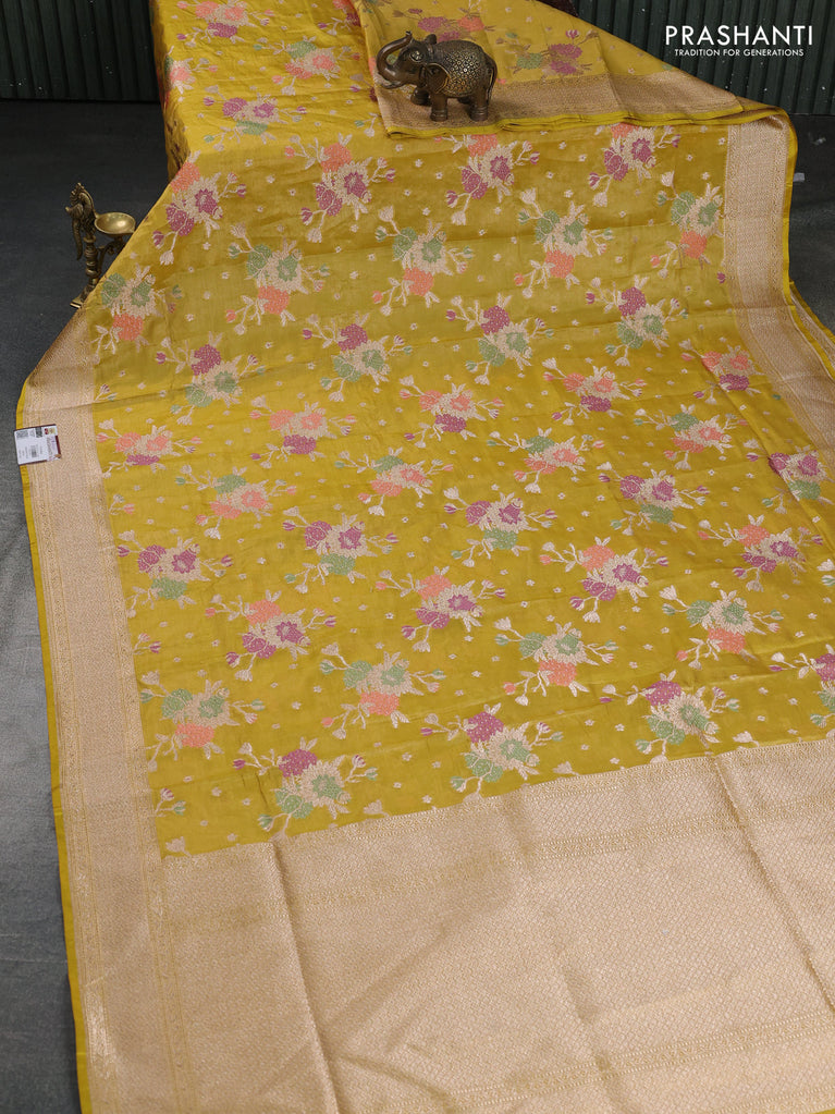 Banarasi tissue silk saree yellow with allover zari woven mina weaves and zari woven border