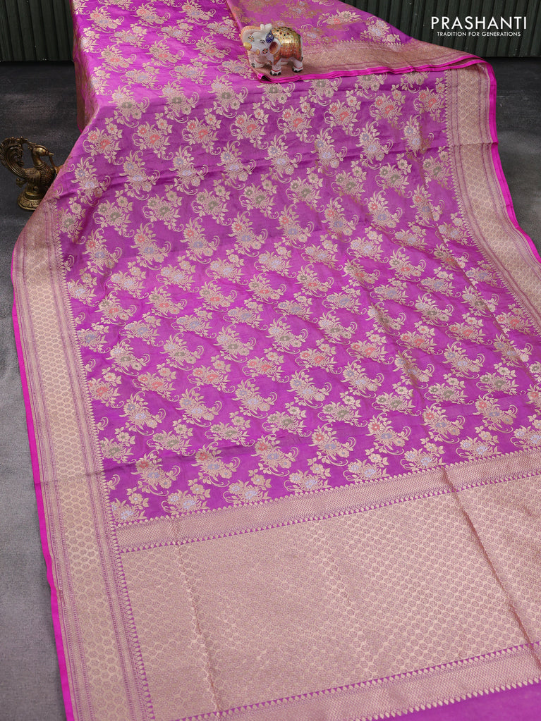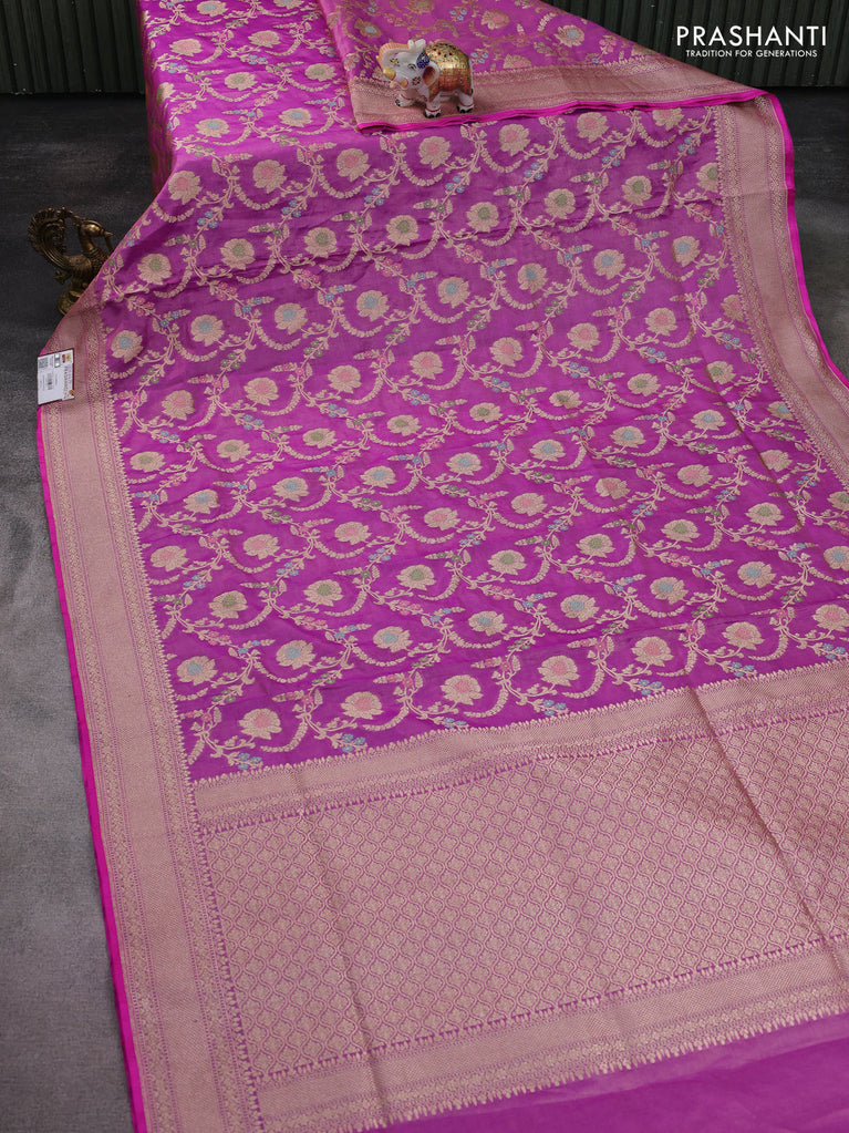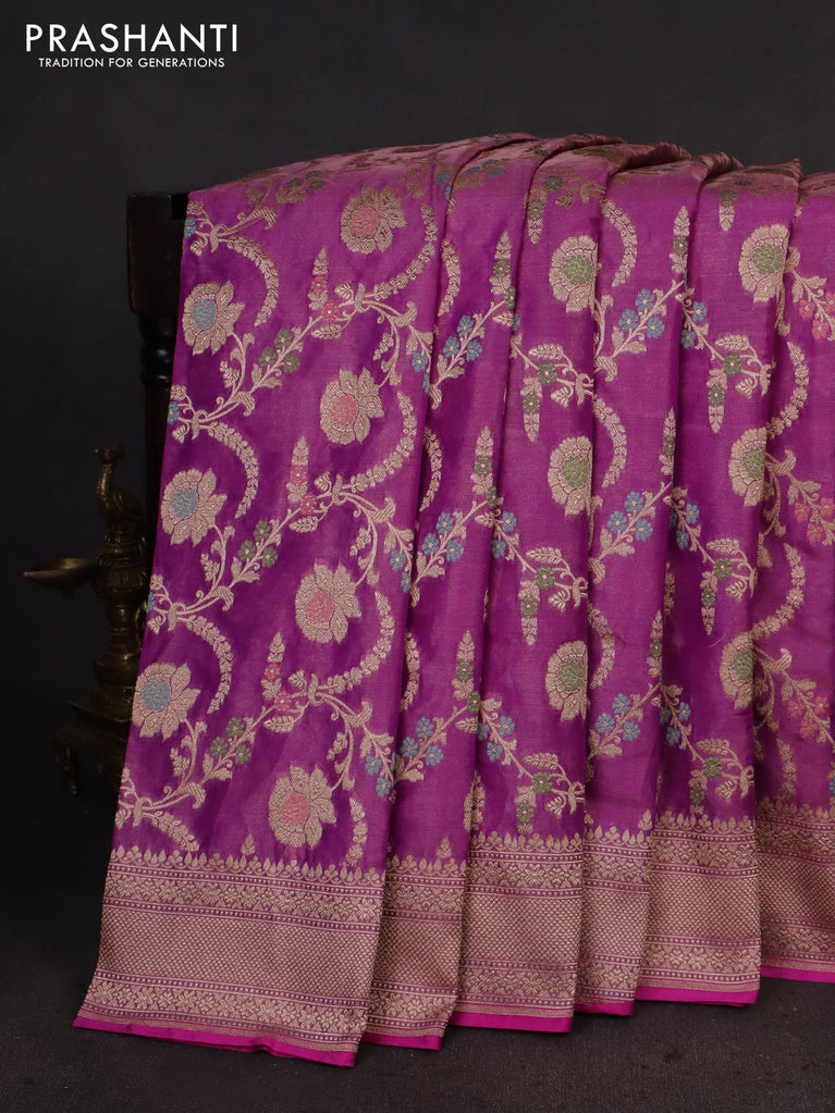 Banarasi tissue silk saree purple with allover zari woven brocade weaves and zari woven border