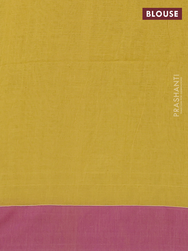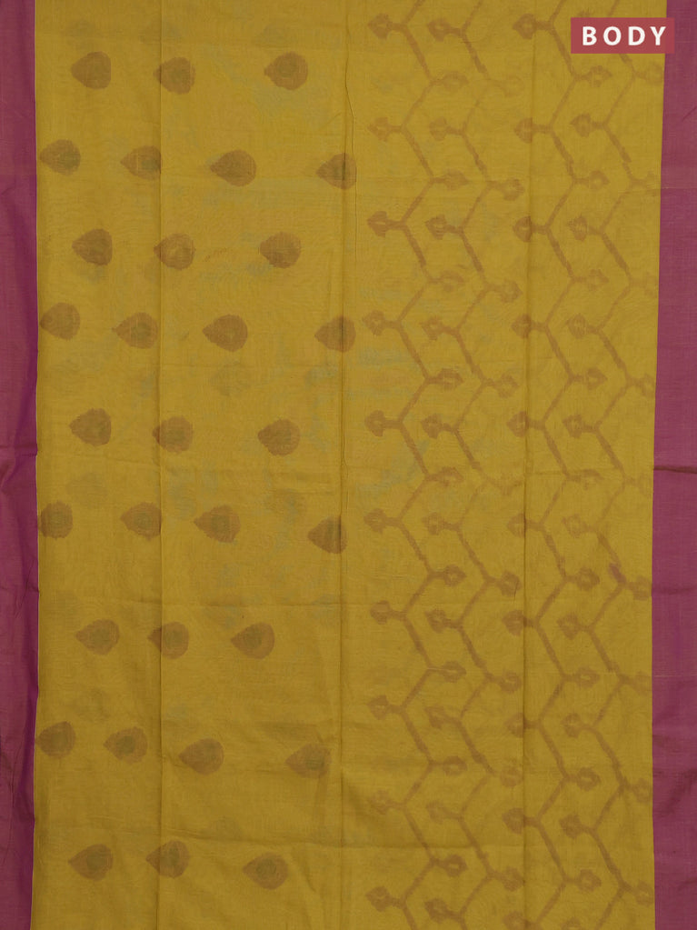 Bengal soft cotton saree mustard yellow and purple with allover butta weaves and simple border