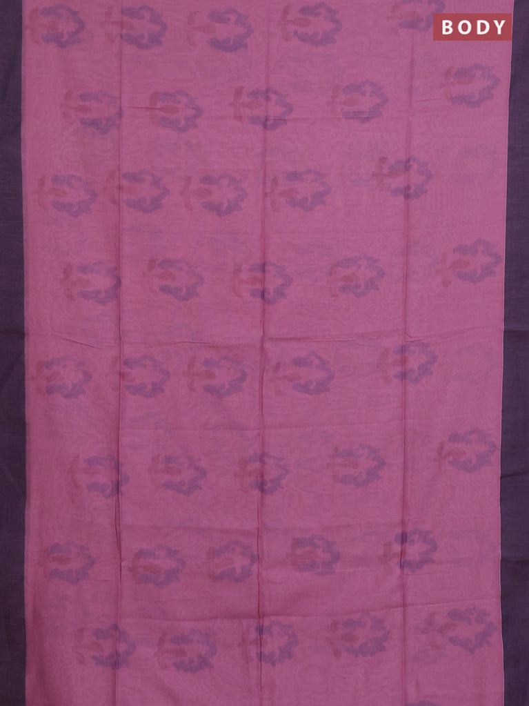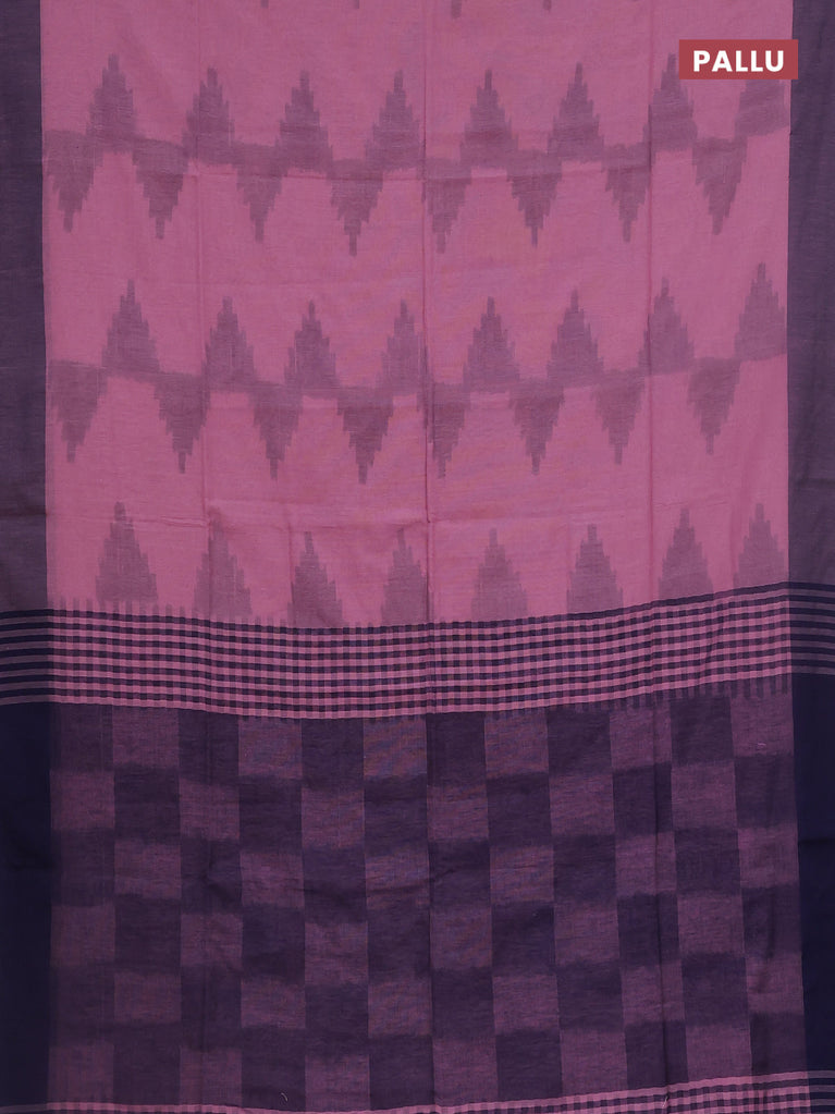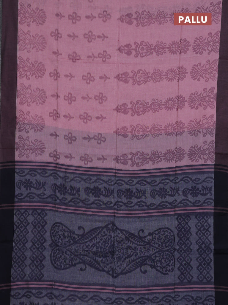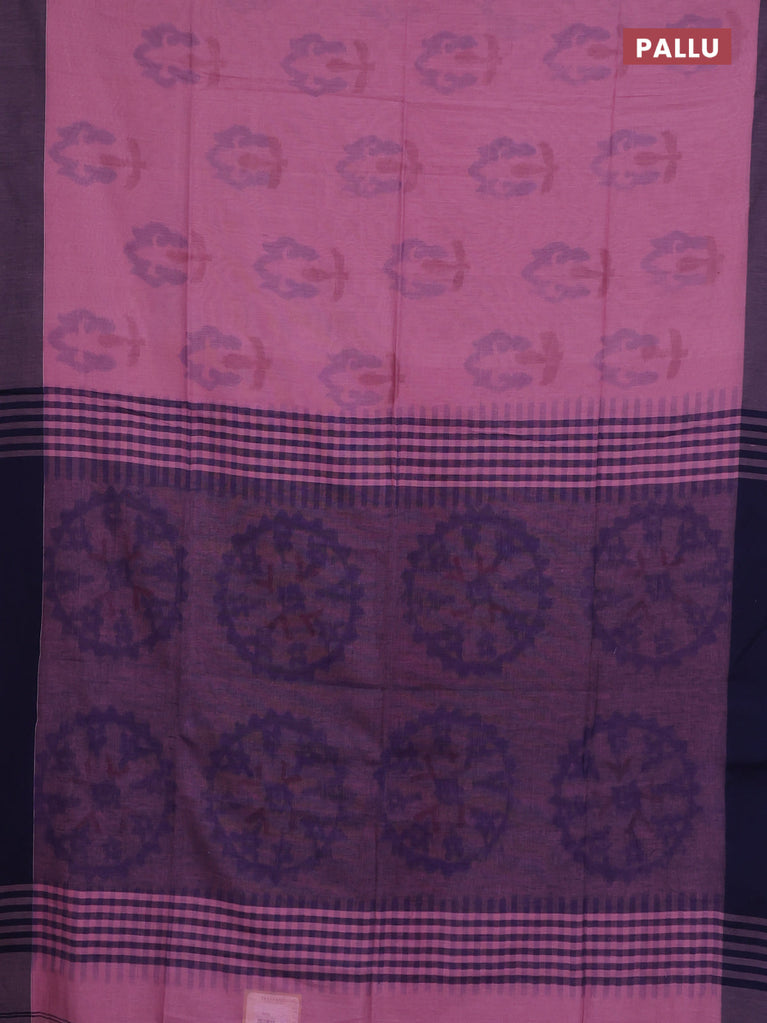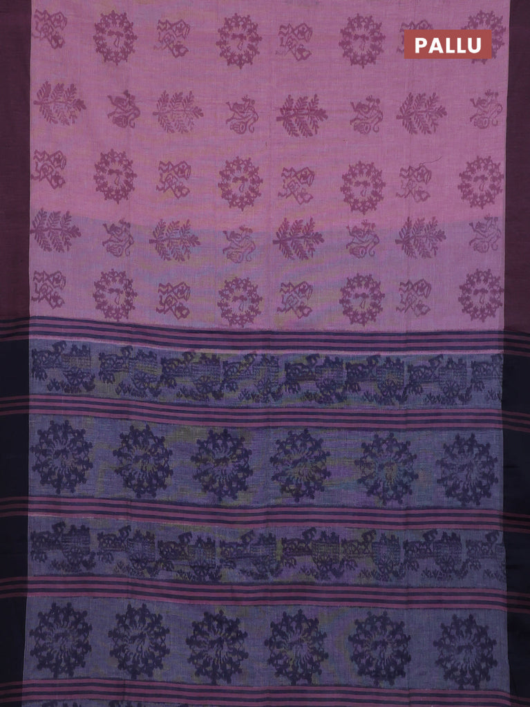 Bengal soft cotton saree pastel pink and navy blue with allover weaves and simple border