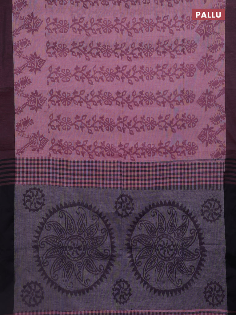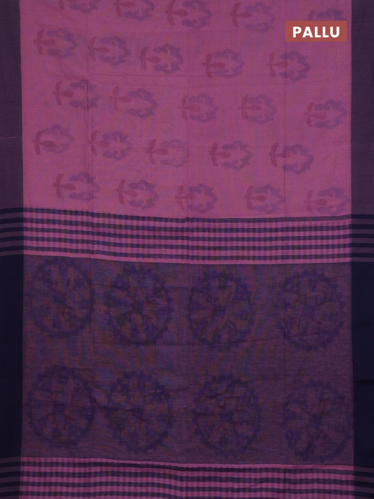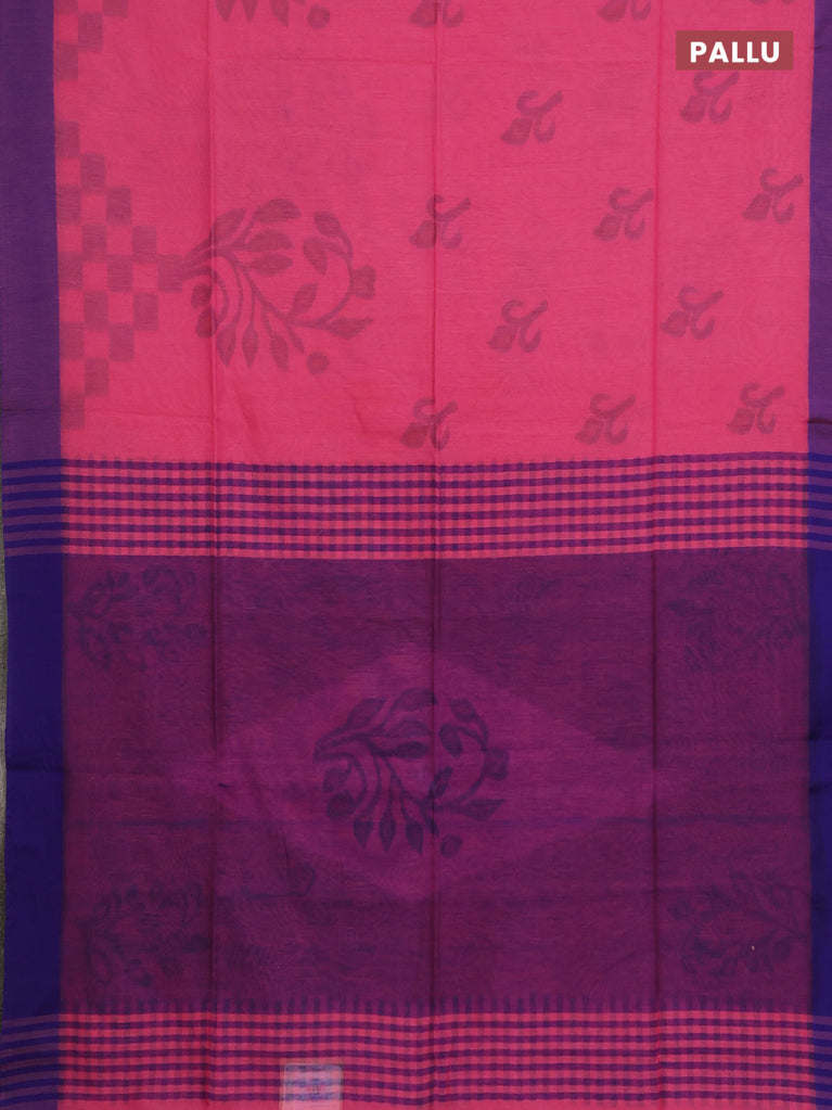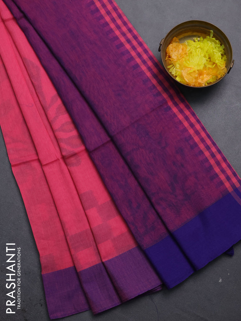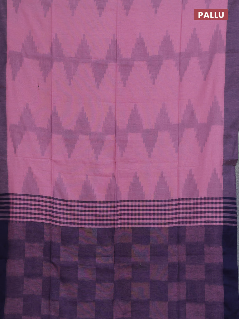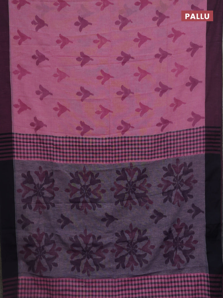 Bengal soft cotton saree pastel pink and navy blue with allover weaves and simple border