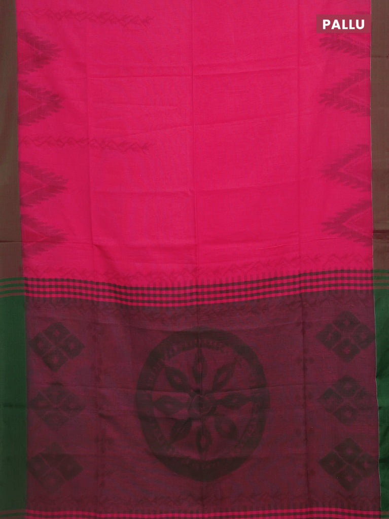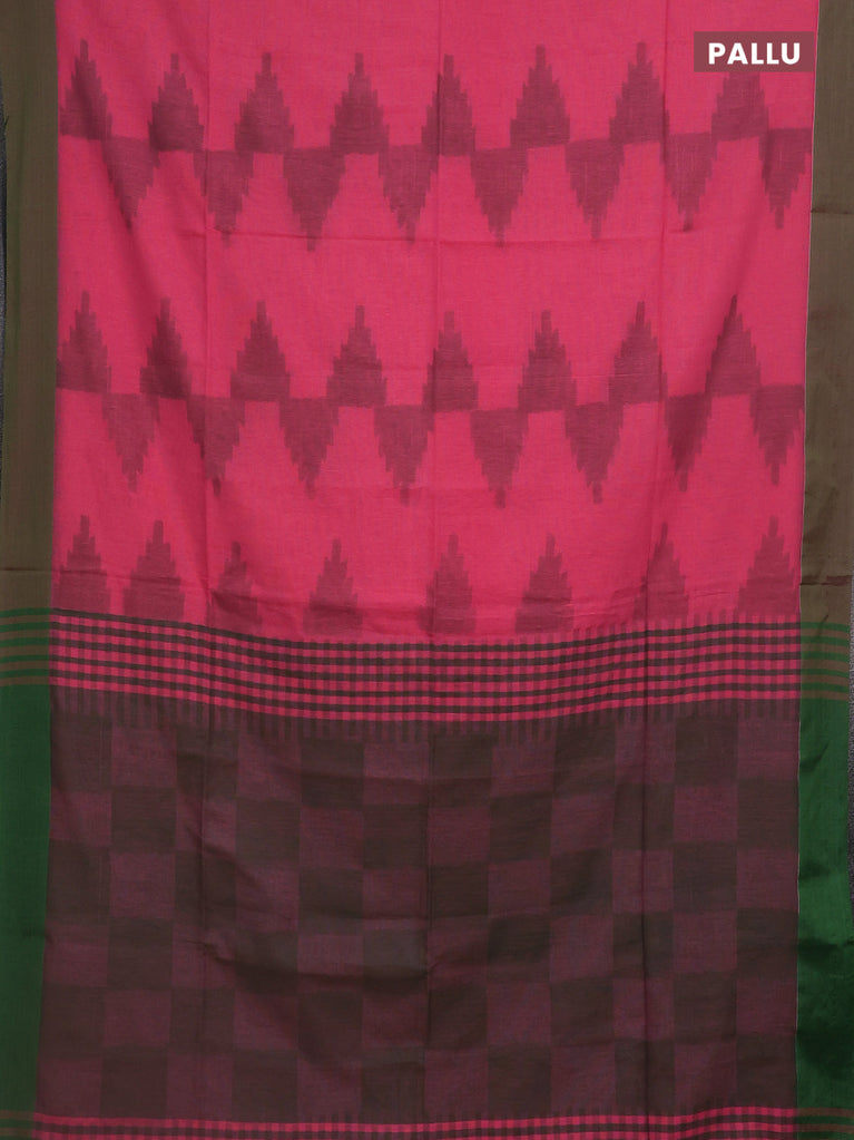 Bengal soft cotton saree peach pink and green with allover weaves and simple border