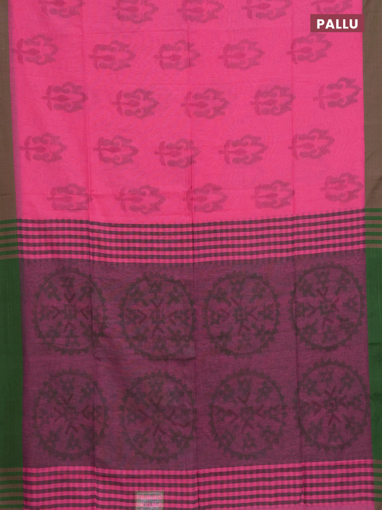 Bengal soft cotton saree peach pink and green with allover butta weaves and simple border