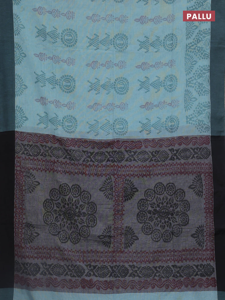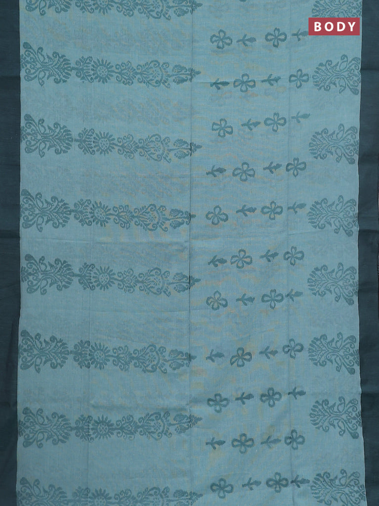 Bengal soft cotton saree pastel blue and grey with allover weaves and simple border