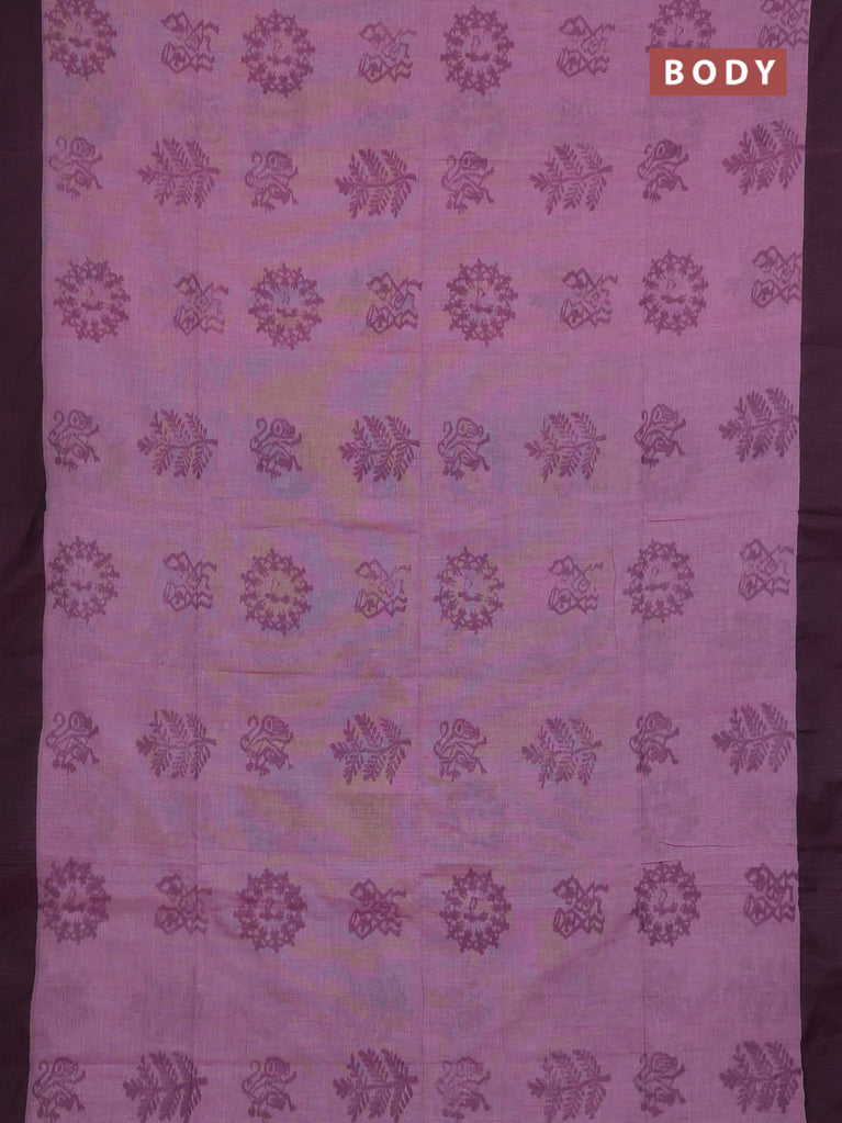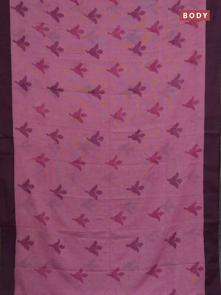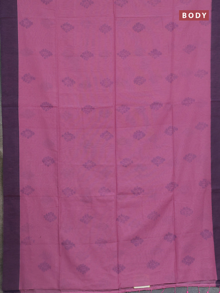 Bengal soft cotton saree pastel pink and grey with allover weaves and simple border