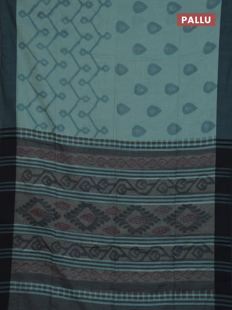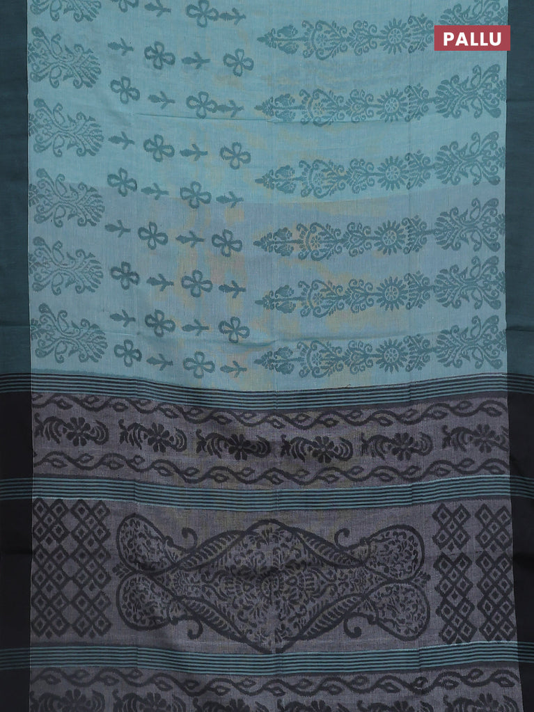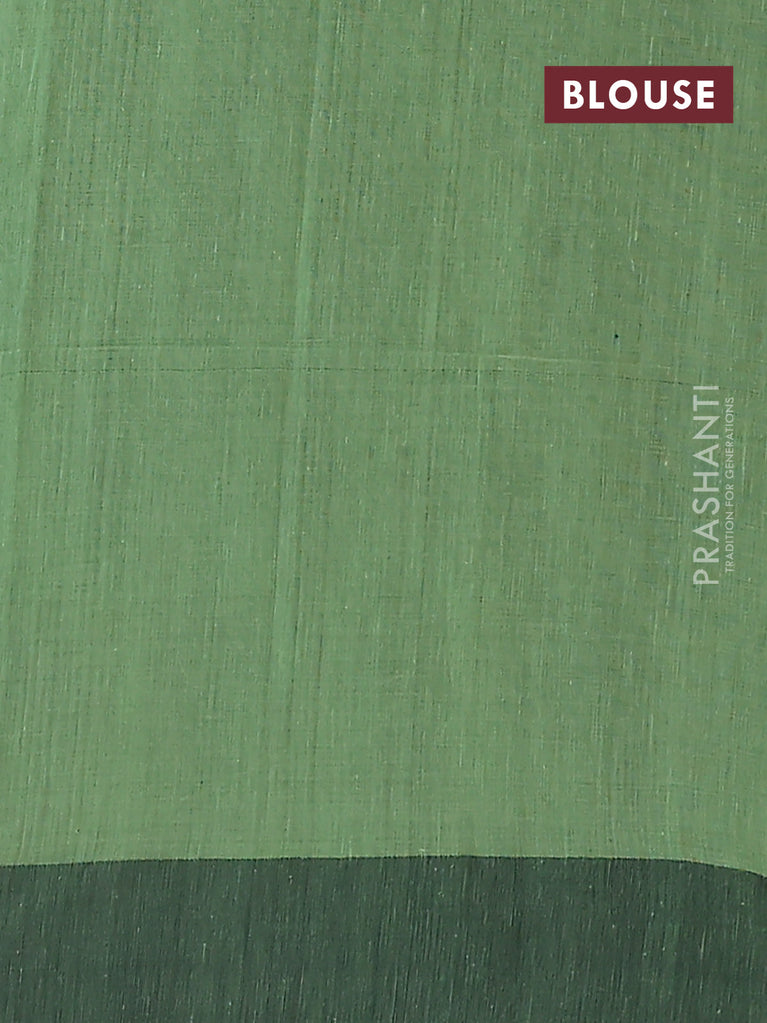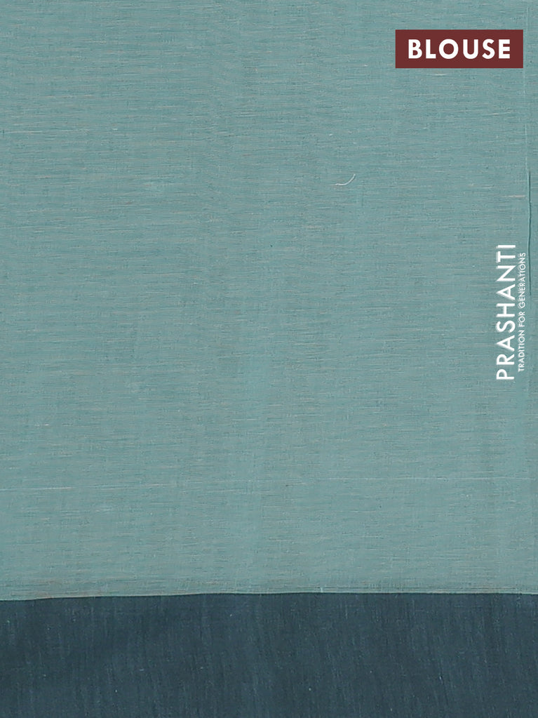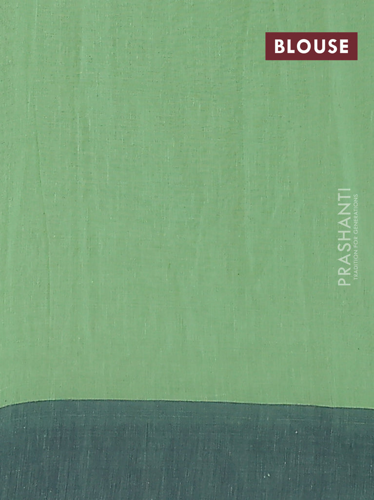 Bengal soft cotton saree pastel green and navy blue with weaves and simple border