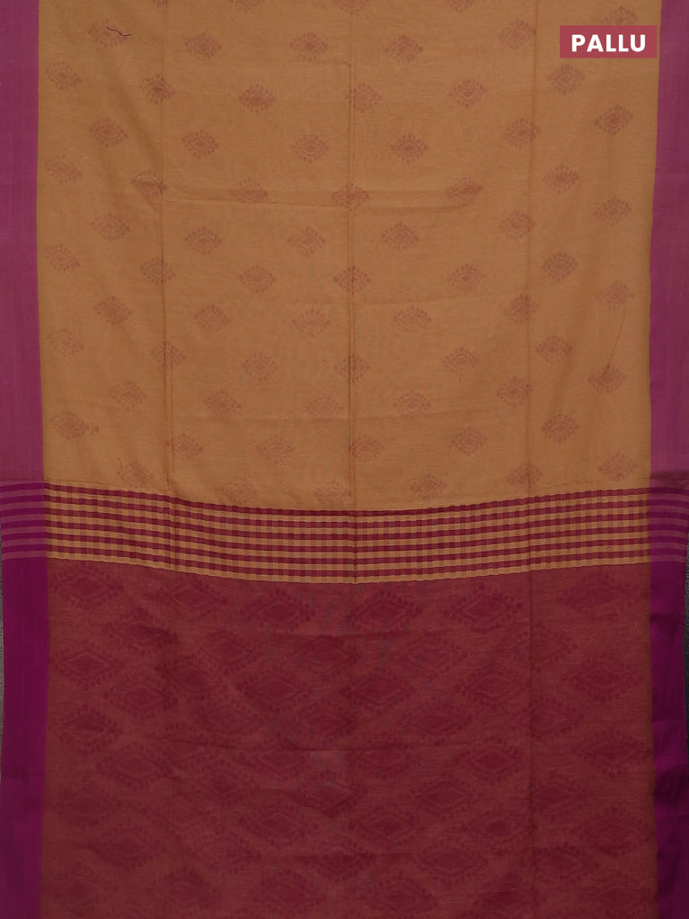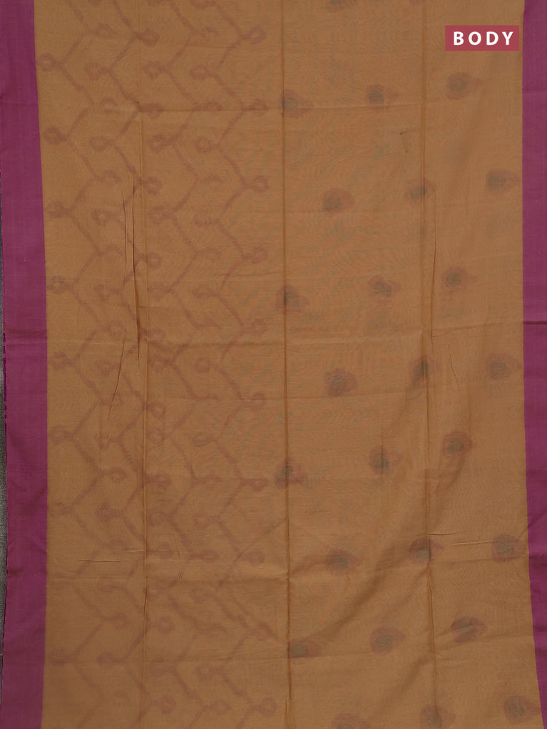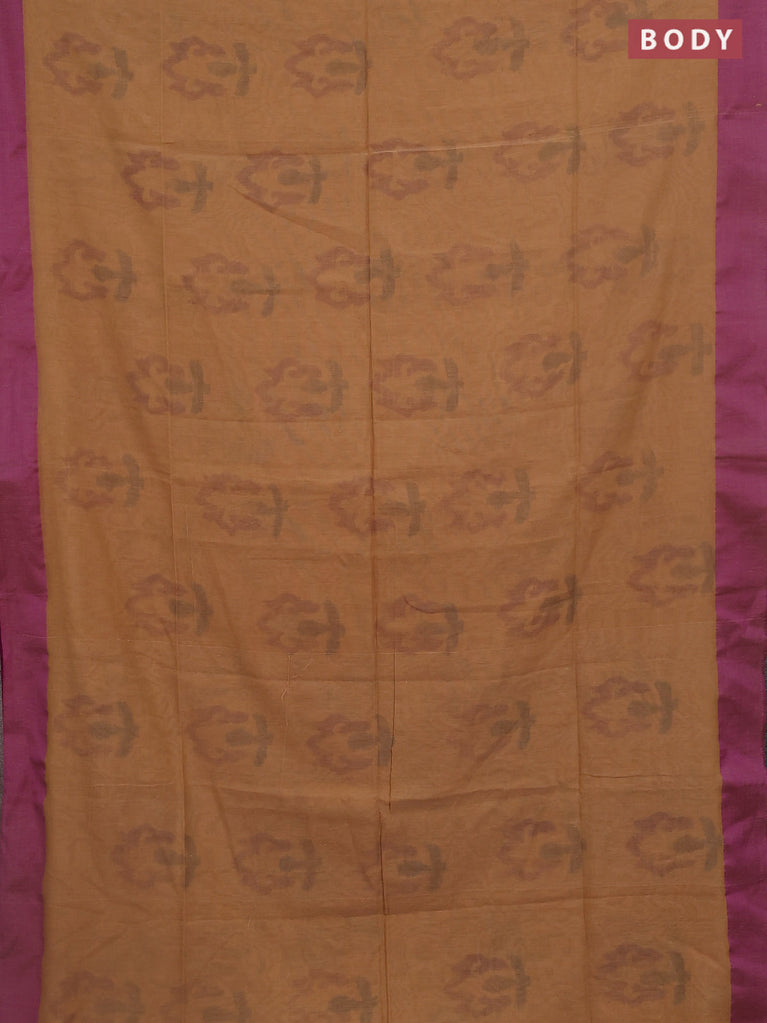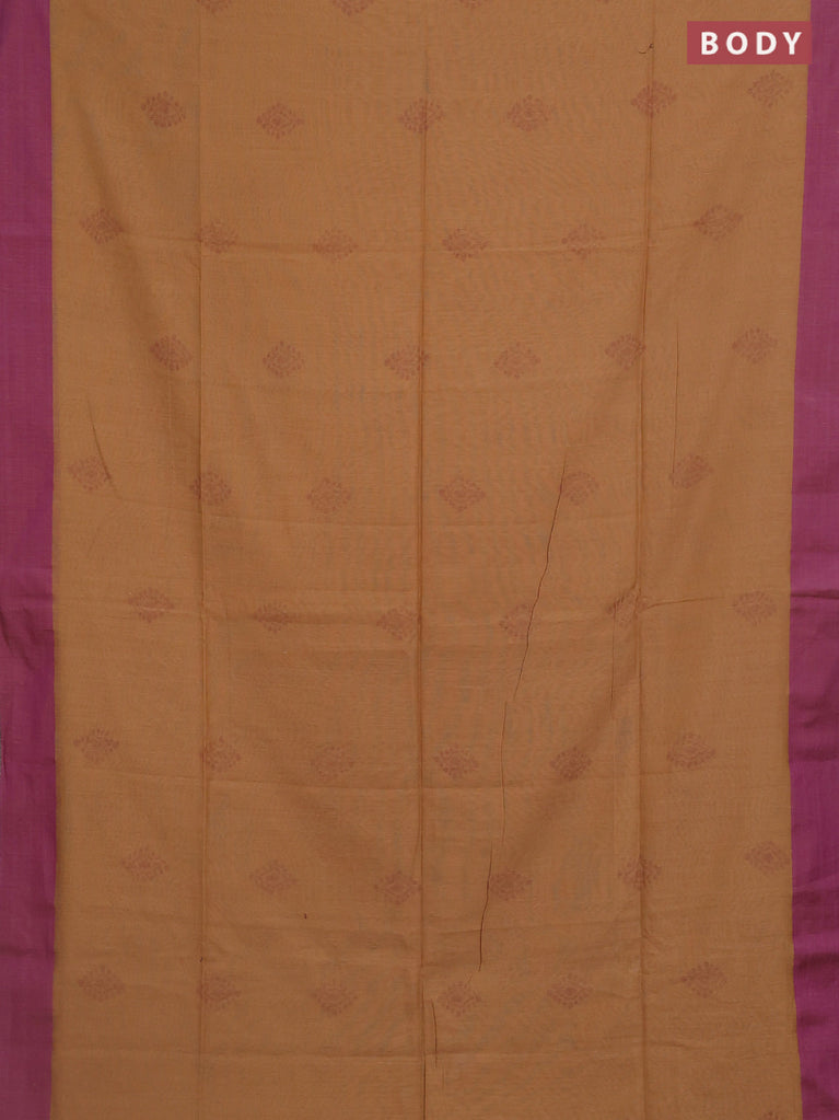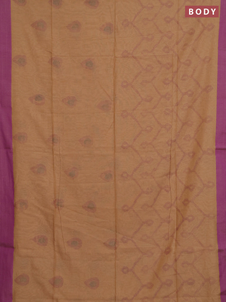 Bengal soft cotton saree sandal and purple with allover butta weaves and simple border